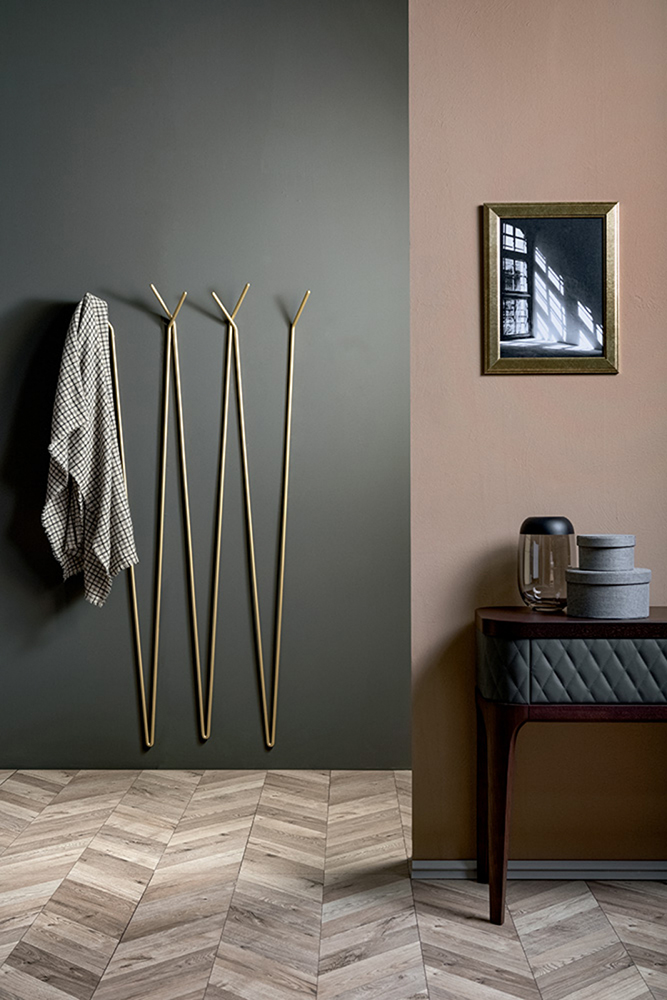 Կախիչ լաքապատ մետաղալարից մինիմալիստական և ֆունկցիոնալ դիզայնով։ Առկա է փայլատ ոսկե լաք, փայտածուխ մոխրագույն և քարե բրոնզ: