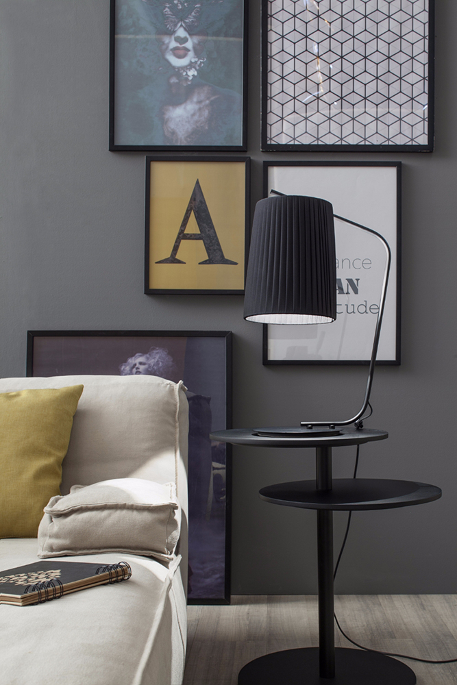 Ծալքավոր վերնամասը, իսկ ծալքերում, նուրբ բարակ գծերի մեջ, լույսը պայծառ փայլում է՝ պաշտպանված լուսամփոփով։ Մեկ լայն, կարճ լուսամփոփ կախովի լամպերի համար; մեկ բարակ, բարձր լուսամփոփ սեղանի լամպերի համար: