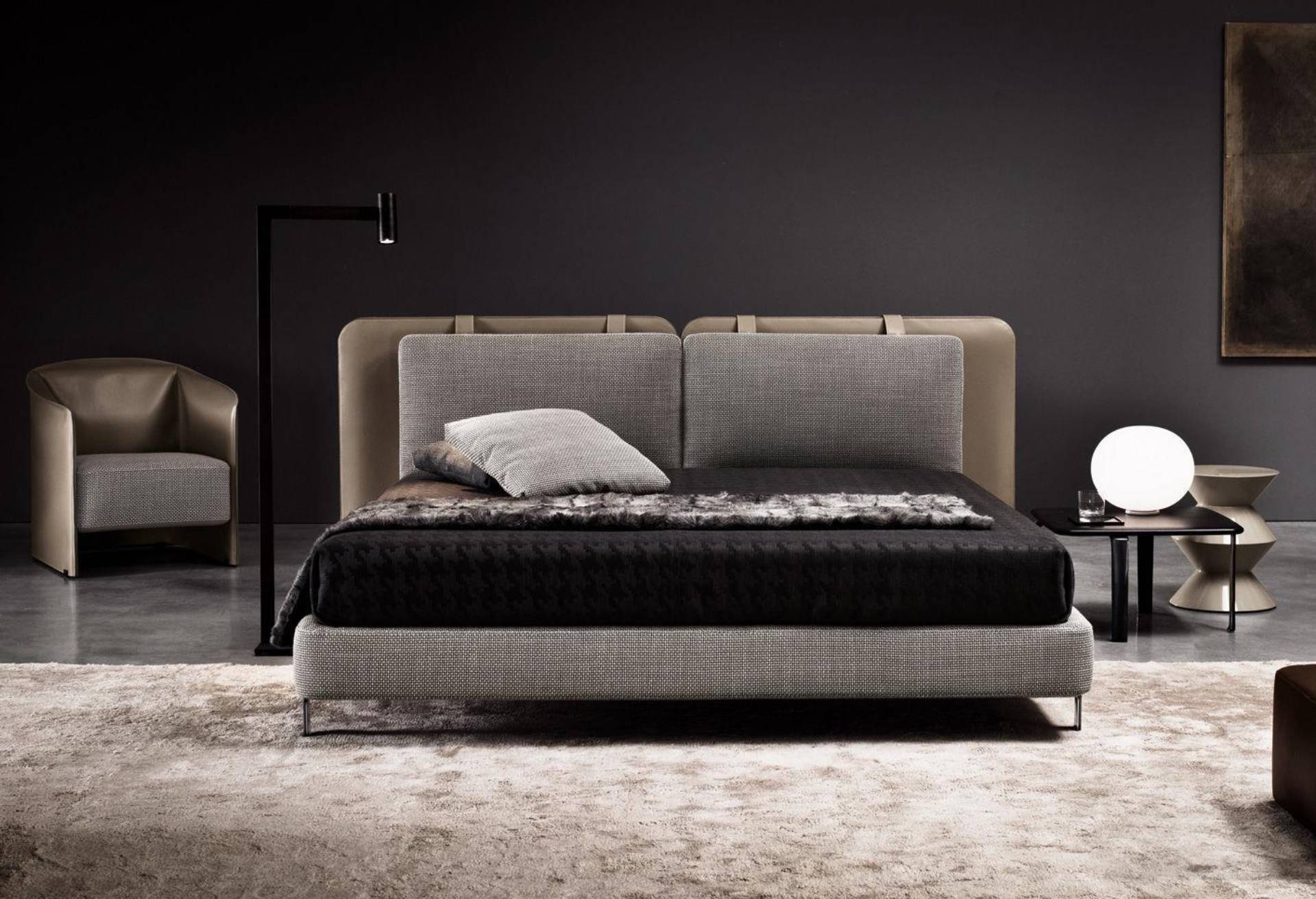 Մահճակալը հենվում է նրբագեղ ձուլածո անագագույն ալյումինե ոտքերի վրա: