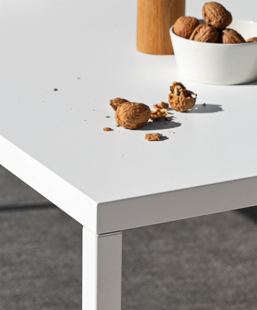 Iron-ը մինիմալիստների երազանք է: Ներսից պատրաստված է մետաղից, դիմացկուն է և հարմար է բացօթյա օգտագործման համար։ Սեղանածածկը ունի ներքին կառուցվածք և ունի ընդամենը 30 մմ հաստություն:
