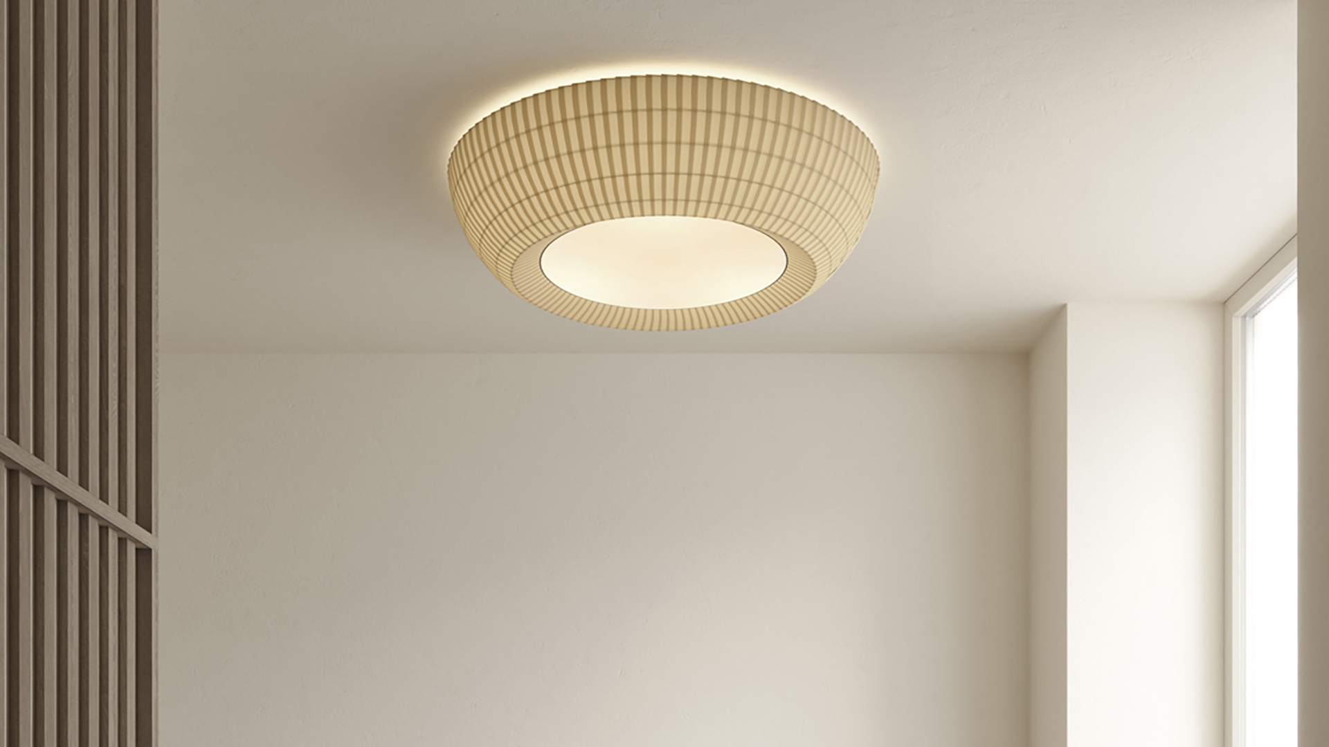 Потолочная версия Bell является продолжением эстетики подвесной. Легкость, придаваемая тканью, многомерность и цветовые вариации остаются неизменными. Приспособляемость этой версии к различным контекстам обеспечивается меньшими размерами и простотой линий. Его ткань pongé, помимо огнестойкости, благодаря своей текстуре делает Bell акустической лампой. Его эквивалентная площадь звукопоглощения до 1,86, что позволяет Bell снизить уровень шума на 37%.