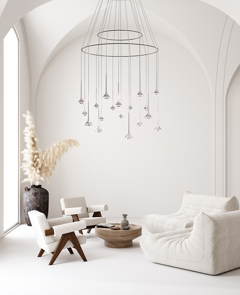 Множественные отражения и радужные симметрии проходят сквозь материю, порождая новые формы. Чистота алюминия сочетается с гранями кристалла в калейдоскопической игре непредсказуемого блеска.