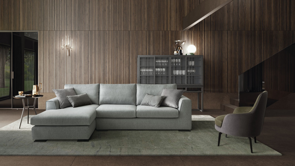 Forest имеет прочную поддерживающую конструкцию, успокаивающие боковые подлокотники и большие удобные сиденья с тканевой обивкой. Этот диван выделяется своей элегантностью и боковым шезлонгом.