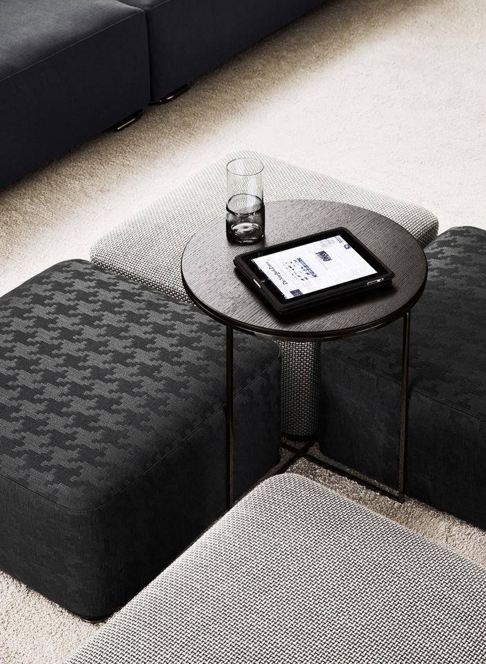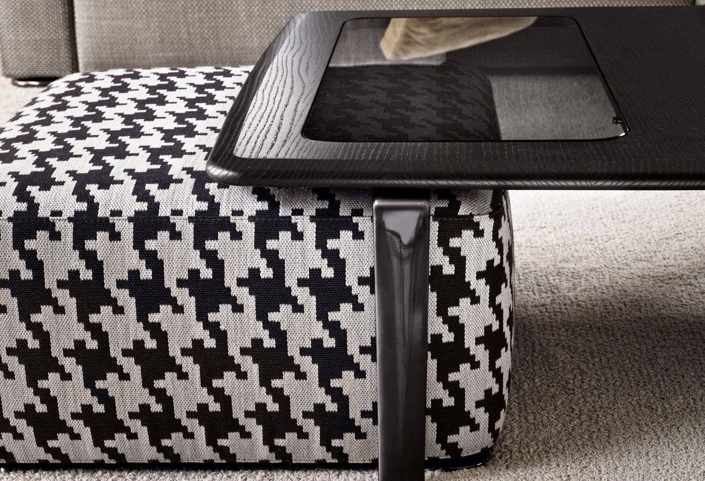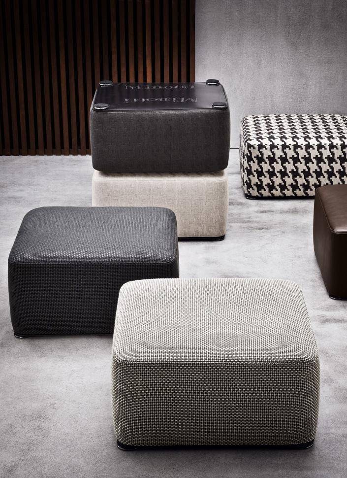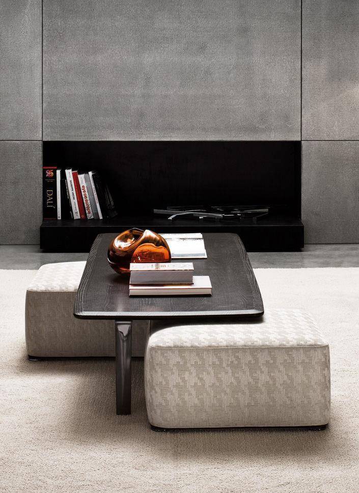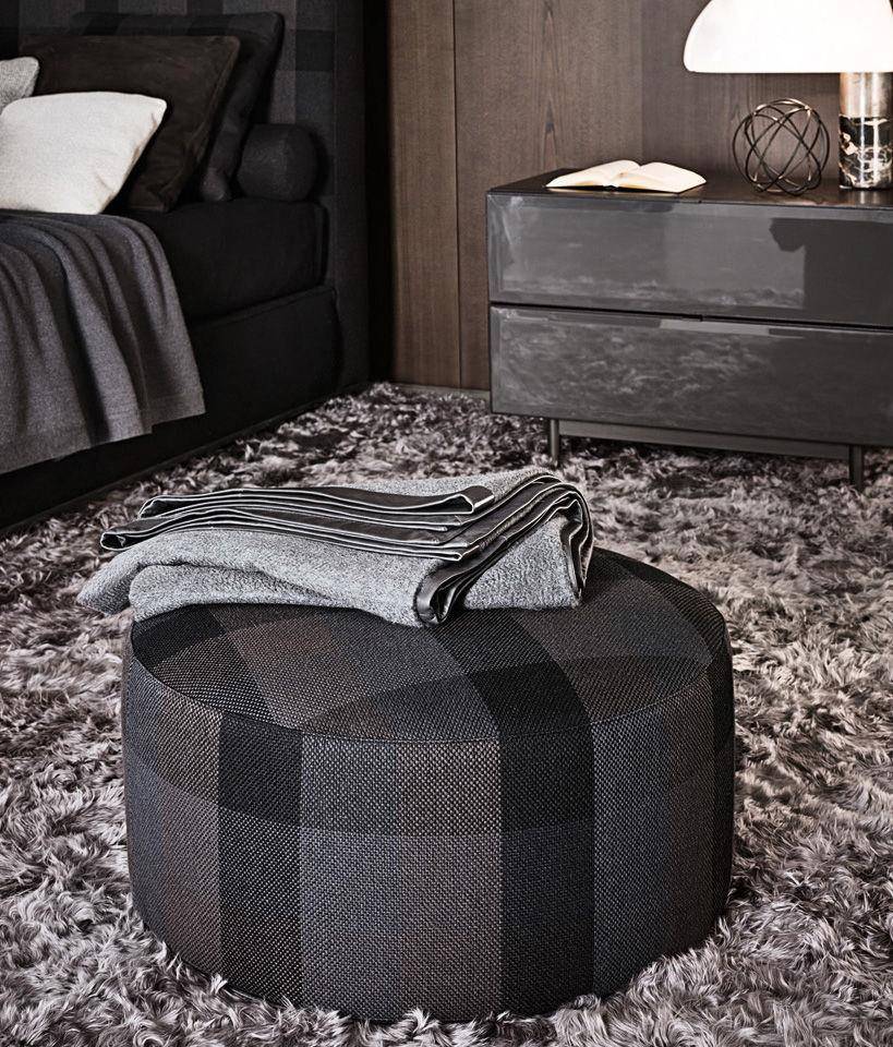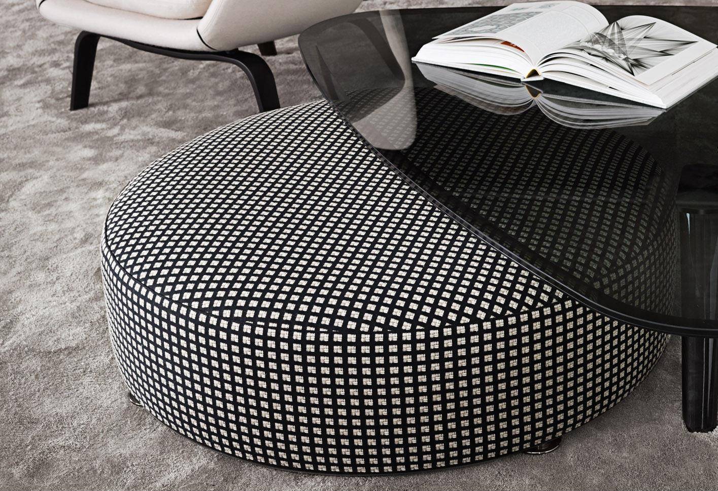 Все пуфы отличаются компактным стилем и вниманием к изысканности деталей, таких как наполнение гусиным пухом, покрытие из седельной кожи с логотипом Minotti и сдержанно элегантные металлические ножки из черного никеля.
