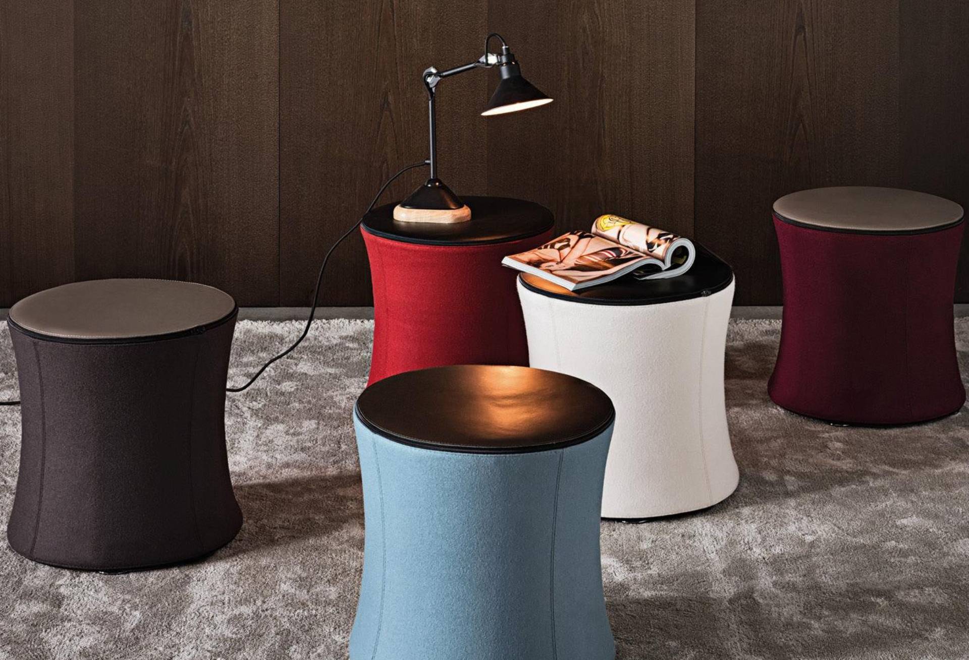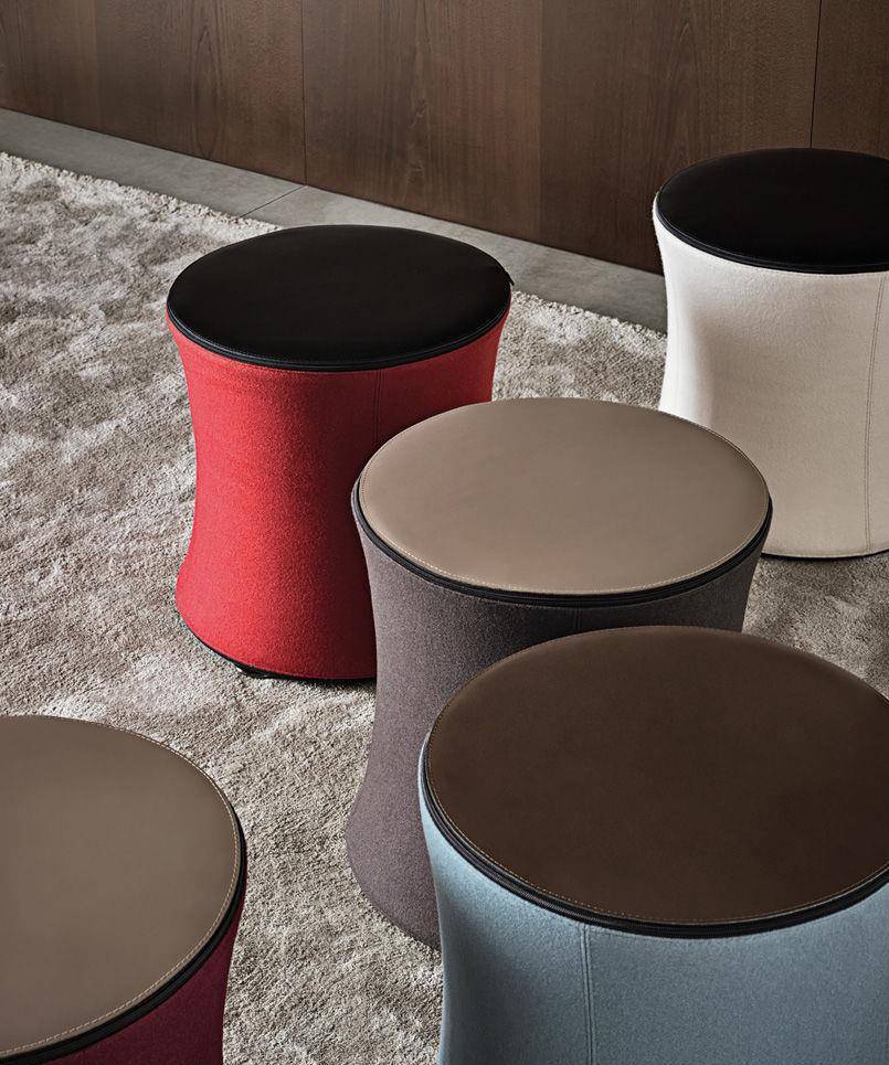Семейство Davis включает в себя несколько пуфов, как круглых, так и квадратных, доступных в разных размерах, а также Davis «Drum» в особой форме песочных часов с верхом из седельной шкуры.