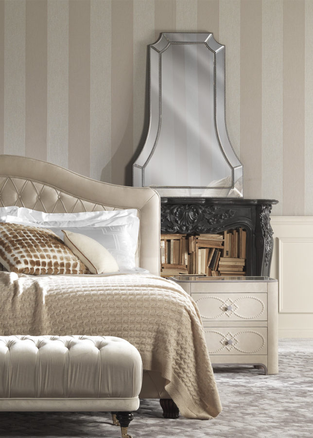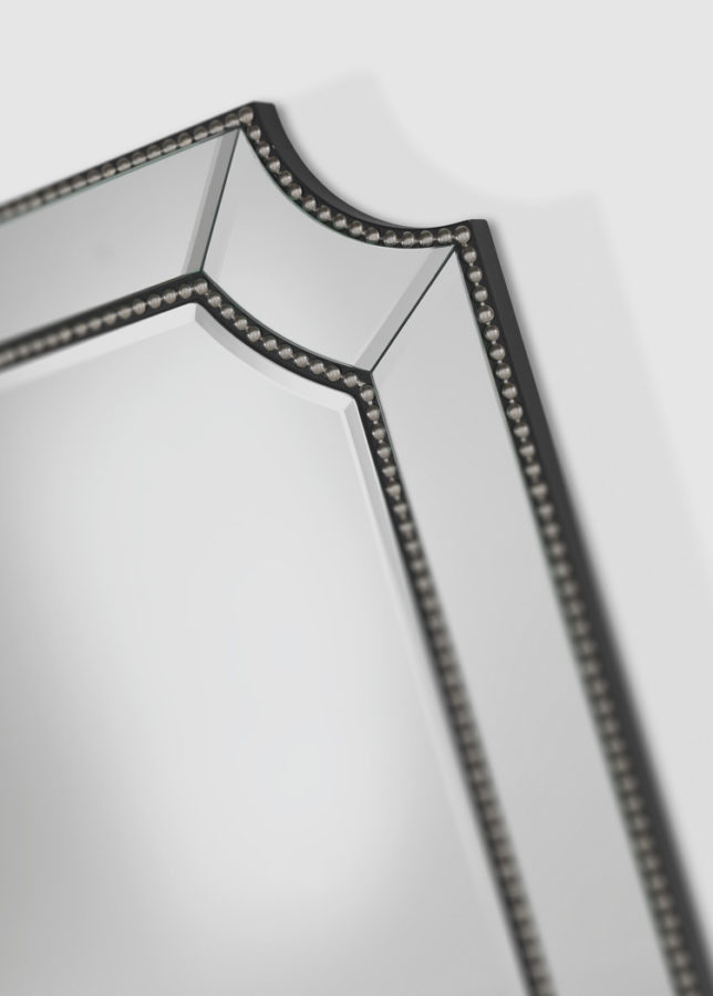 Зеркало со структурой из многослойного тополя. Зеркала с натуральной фаской и декоративными металлическими шляпками.