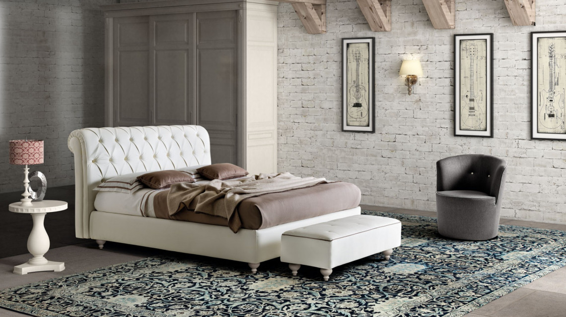 Изголовье, безусловно, оригинальное благодаря выступающему фигурному профилю, который проецирует гармоничную композицию Rafaello на заветную и пережиточную атмосферу классической эпохи. О последних также метко напоминает элегантный рисунок центральной обивки, пространство которой расставлено ровными тканевыми пуговицами или полированными орнаментальными кристаллами.
