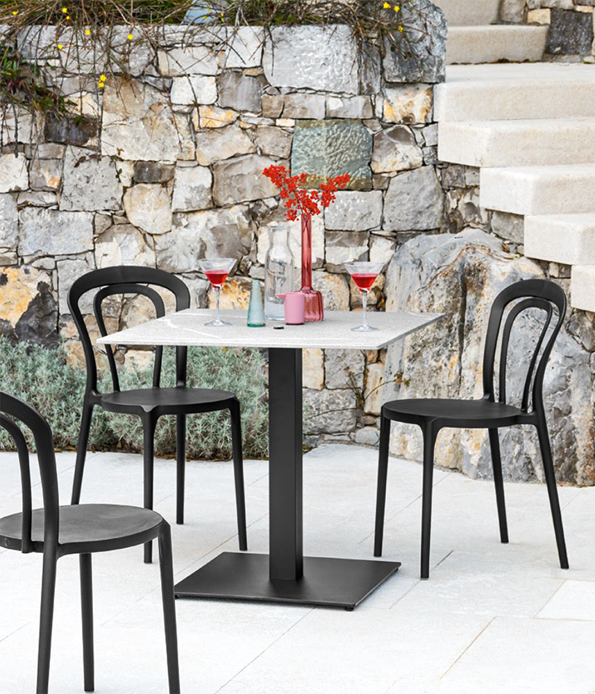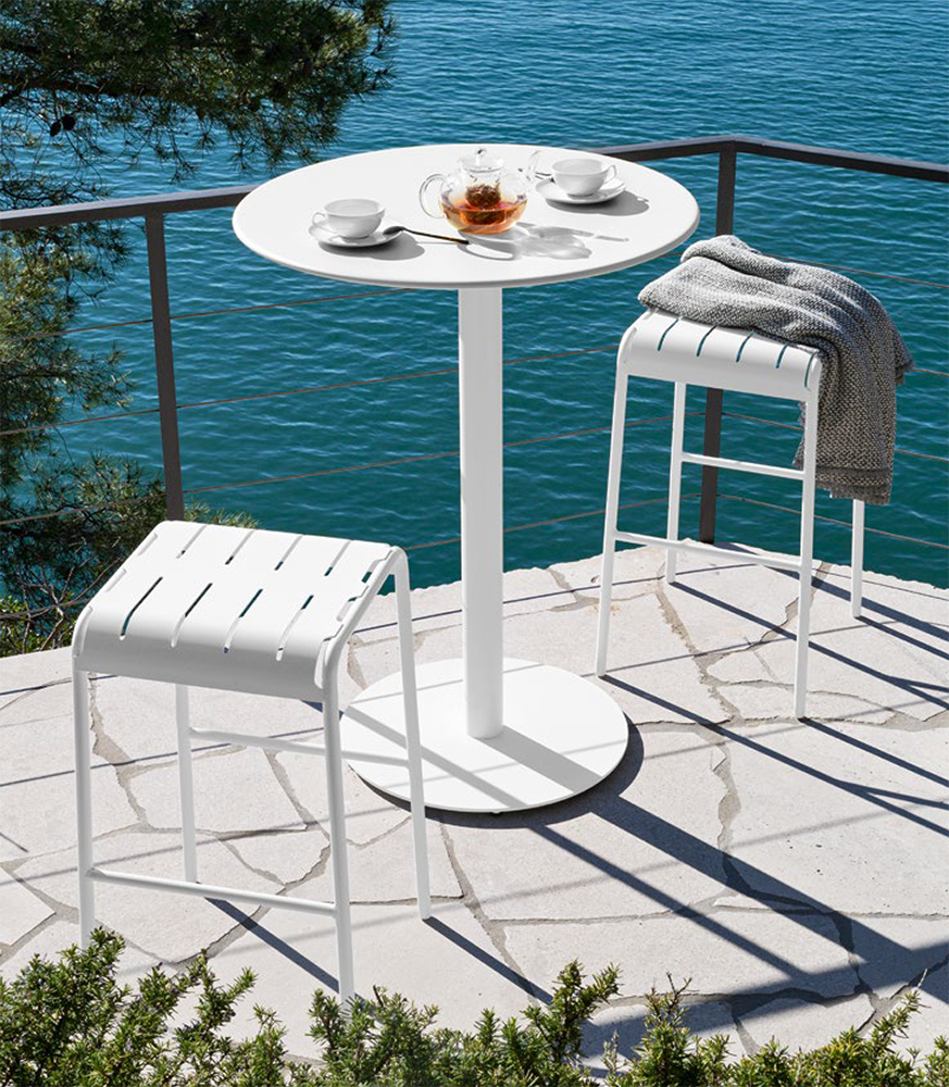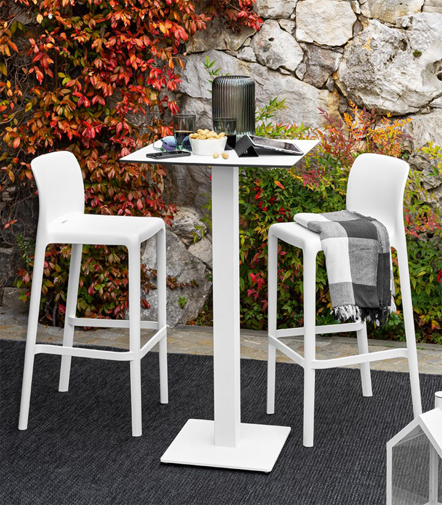 Коктейльный столик из металла с регулируемыми ножками. Идеально подходит для использования на открытом воздухе и в зонах отдыха (хромированная версия не подходит для использования на открытом воздухе).