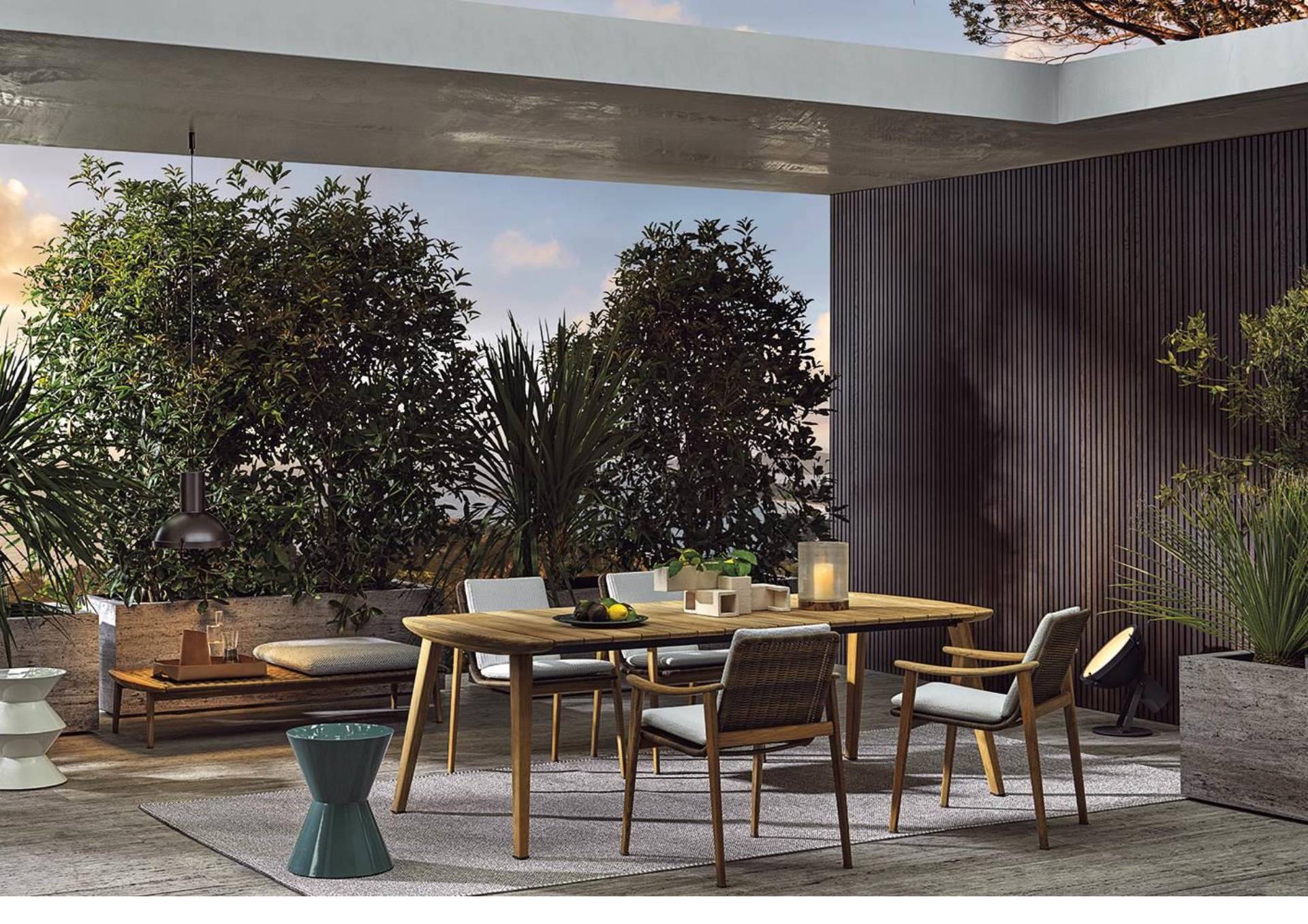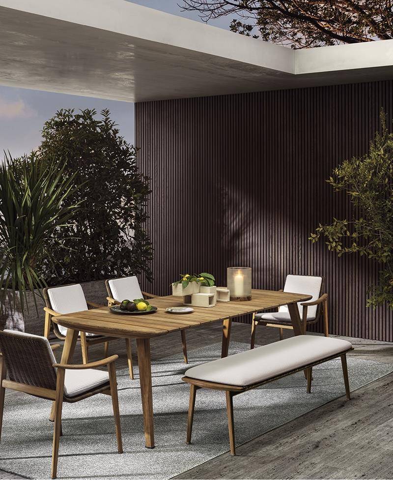 Чрезвычайно легкий вид, подчеркнутый простой структурой, Fynn Outdoor — это стол, который станет главным героем любого обеденного зала на открытом воздухе.