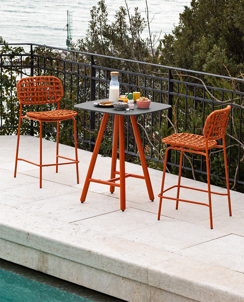 Нераскладывающийся Yo! Стол имеет алюминиевое основание, которое было обработано и покрыто для использования вне помещений. Вы можете выбрать между столешницей из HPL или керамической столешницей, улучшенной с помощью технологии In-side, с тактильной меланжевой отделкой, напоминающей натуральный камень, для создания непрерывного эффекта между поверхностью и краем. Они легко моются и не требуют ухода, несмотря на время. Керамическая поверхность была специально разработана для предотвращения роста плесени и грибка. Yo! также доступен с столешницей из экокамня, изготовленной из переработанных композитных материалов, которые могут быть повторно переработаны в конце срока службы.