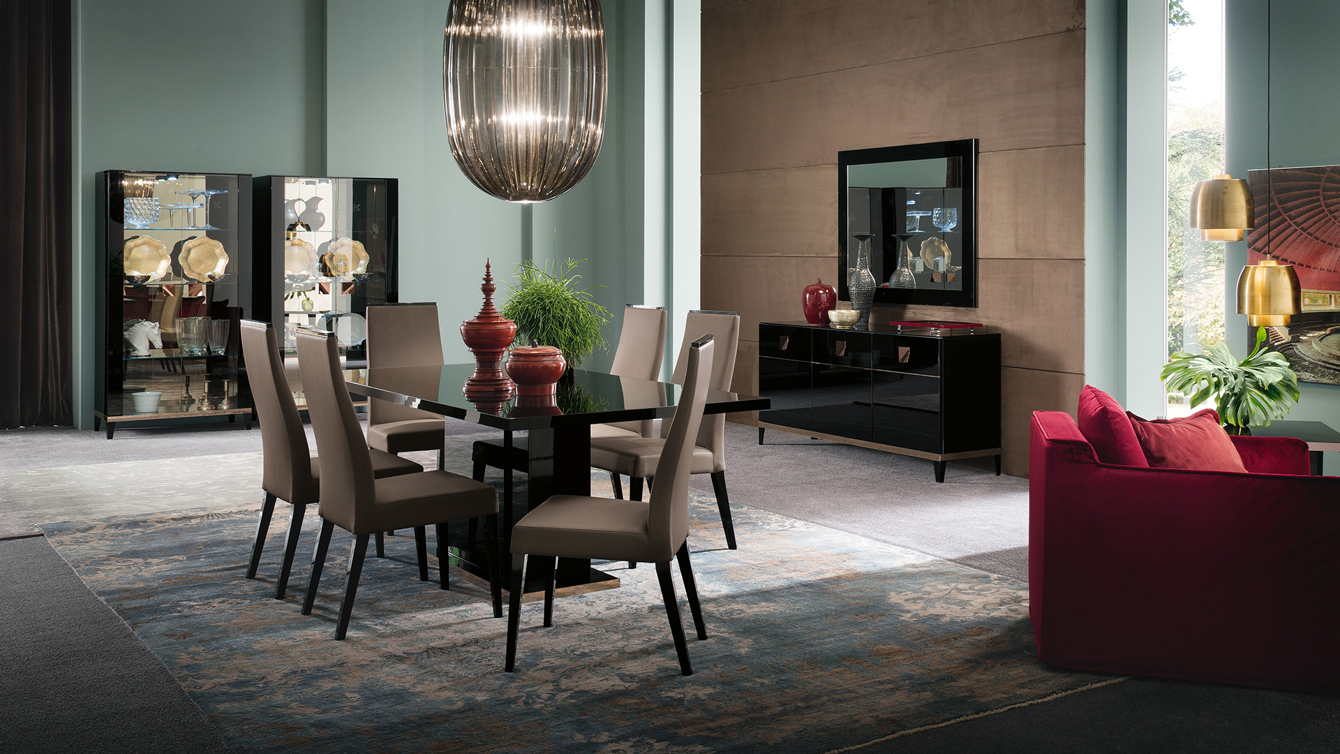Набор для столовой Mont Noir — это королевская коллекция, в которой роскошный дизайн сочетается с современными элементами. Этот набор отличается элегантной черной глянцевой отделкой и золотыми акцентами. Смелые предметы современного стиля из коллекции Mont Noir обязательно привлекут внимание, когда вы добавите их в свой дом.