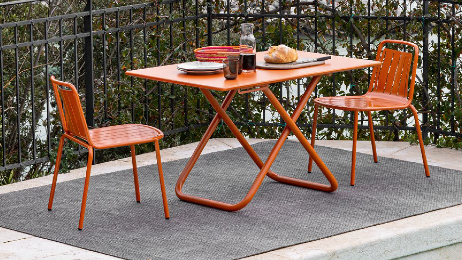 The embodiment of the creative flair and adaptable spirit of the Easy collection, this height-adjustable table has a tubular-metal frame and a top in shaped sheet metal. All the metal parts have been specially treated and coated to make them suitable for outdoor use. The three different adjustment positions make it ideal for use in the living area or dining room.