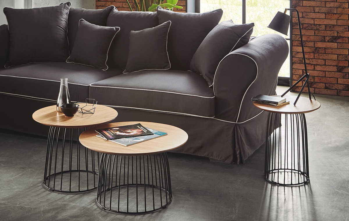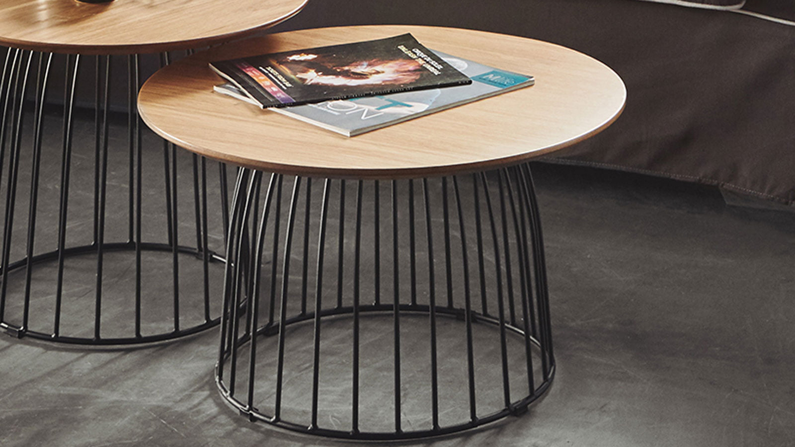 The original coffee table, the oak top of which seems to be planted on top of a metal cage. The table is available in three sizes.