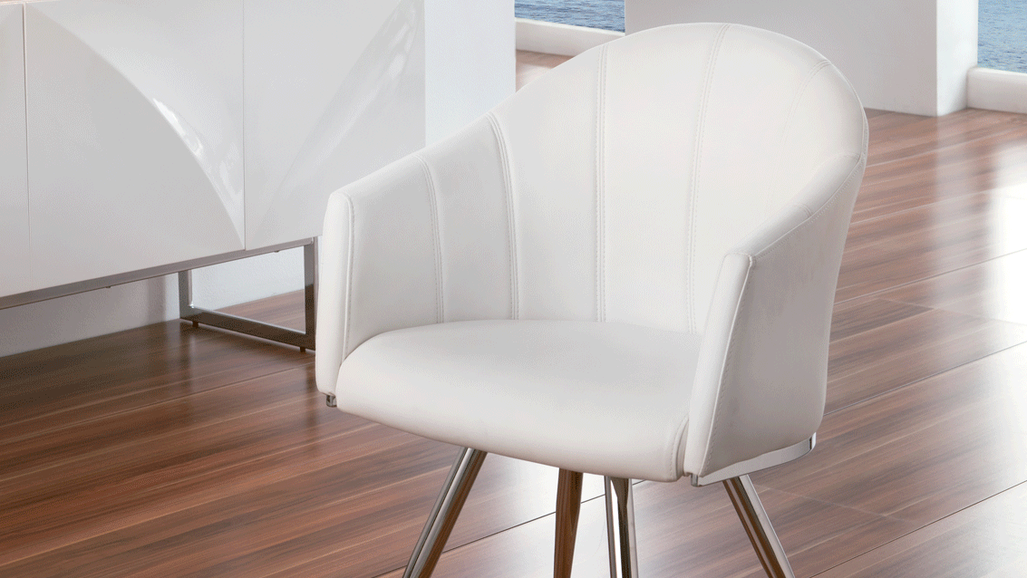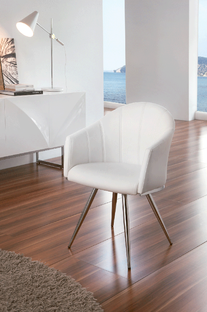 Swivel Armchair in ecoleather with round tube chrome legs.