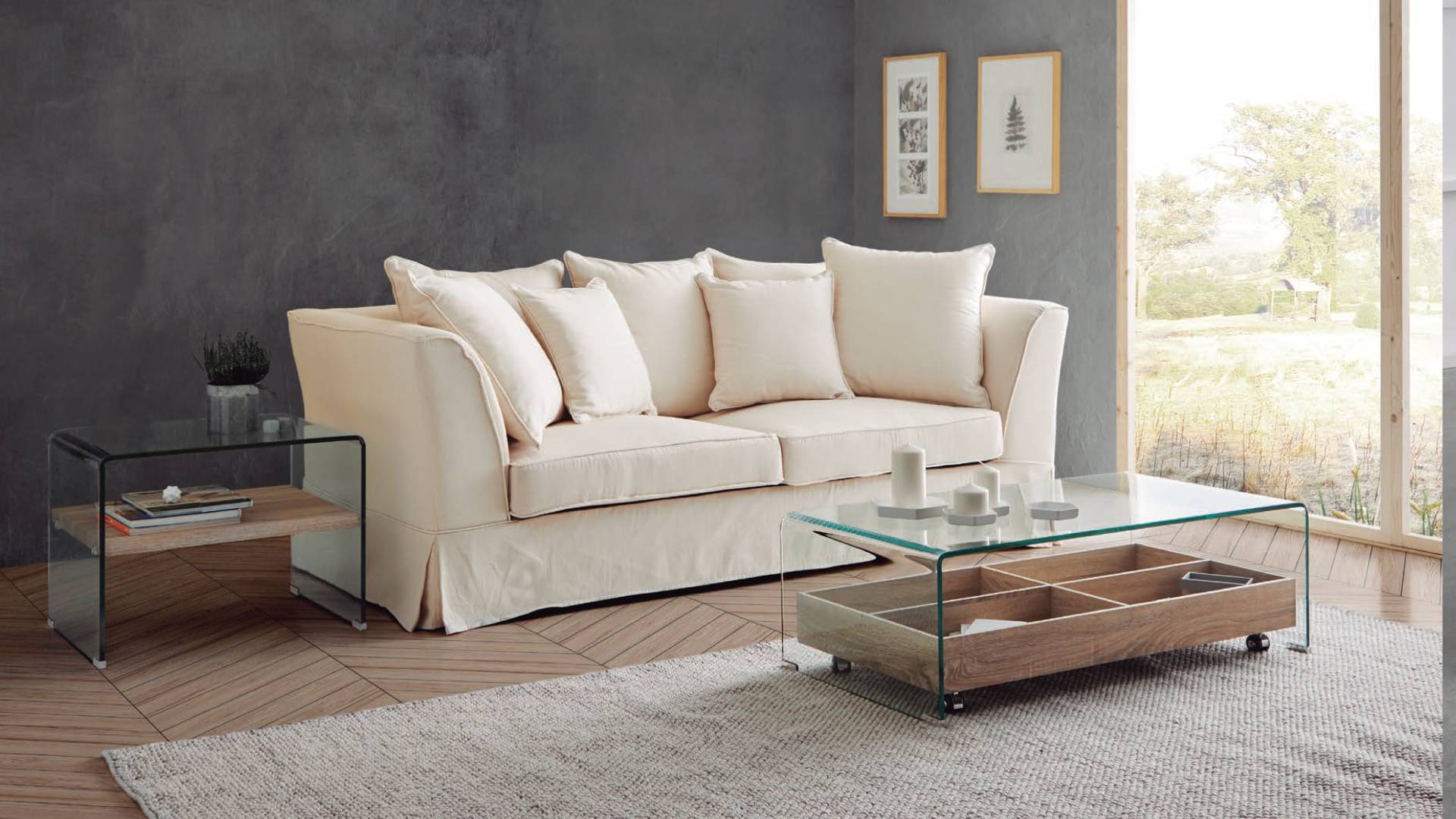 The coffee table with wooden shelf is made of 12mm tempered glass.