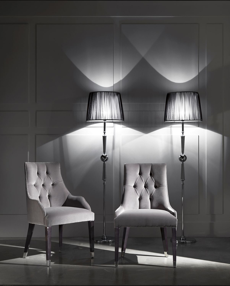 The chair on high legs Byron Capitonne will complement the interior of an apartment or a country house. The Art Deco style furniture is upholstered in natural leather, the shade of which can be chosen at your discretion. The padded back is finished with a quilted surface with matching buttons. The back smoothly passes into the armrests covered with genuine leather. Wooden supports are equipped with metal pads that prevent slipping and damage to the flooring.