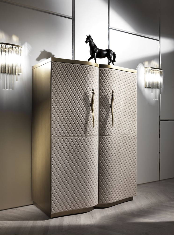 Spacious and functional bar. The body of the model is made of MDF, the base of the furniture is made of solid steel, and the top is made of natural wood. All external surfaces are decorated with matte or glossy varnish. The interior design includes a number of niches and drawers for comfortable storage of dishes and drinks. The back wall of the model is decorated with mirror glass. The designer bar harmoniously combines classic and modern features, which makes the furniture versatile.