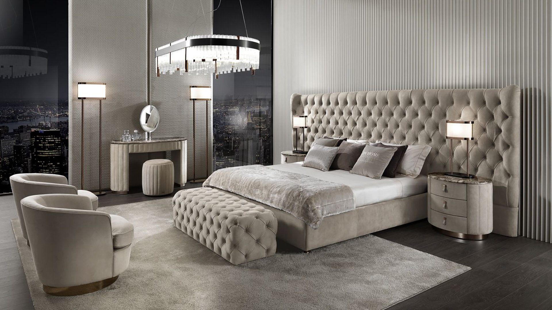 The Vogue marble top bedside table is designed to create a cozy nook in the bedroom. The frame of the furniture is decorated with leather with smooth horizontal lines. This feature makes the surface of the table embossed and original. The marble top has an authentic natural pattern. This piece of furniture will go well with a pouf from the same collection.