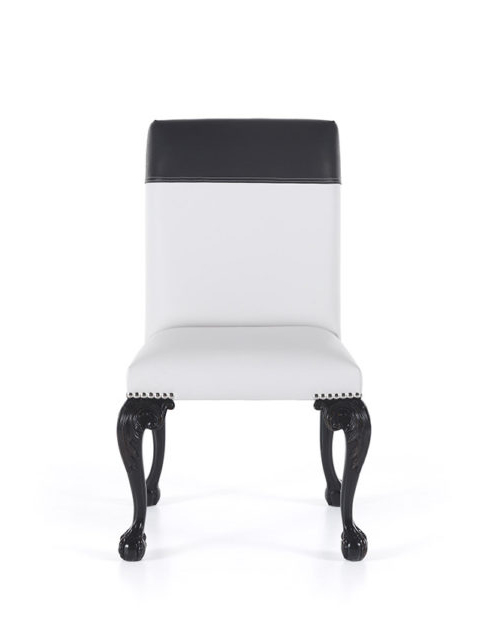 Structure in mahogany and foam. Upholstery in leather cat. A | L.04.01 and cat. A | L.02.05 for top of the back. Ornamental metal nailheads. Legs in black lacquered finishing.