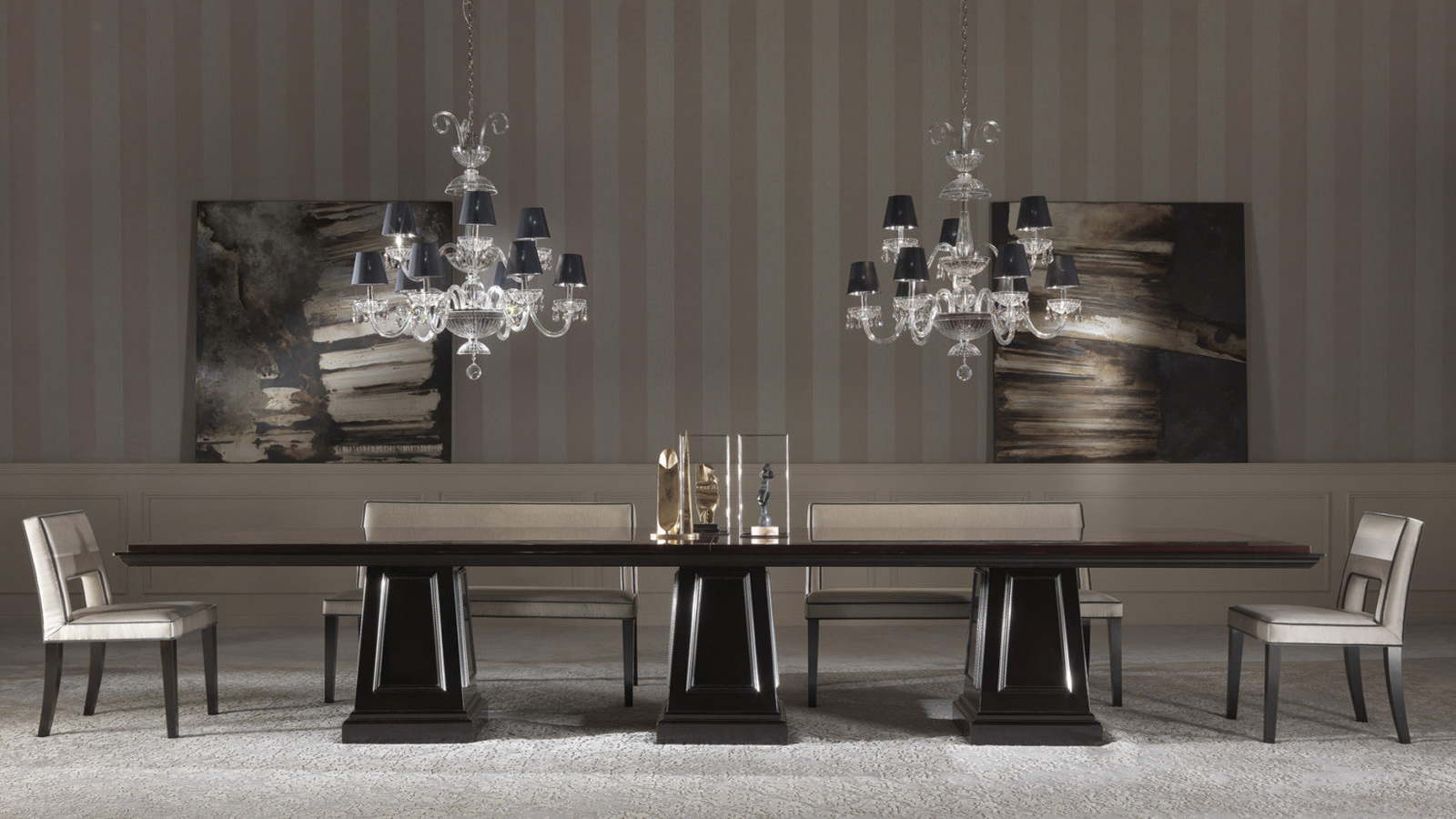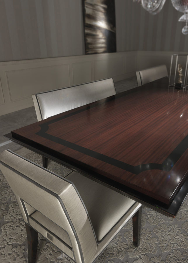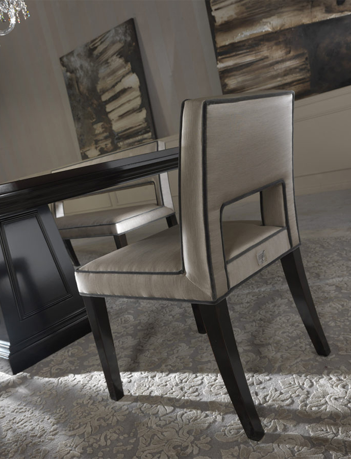 Structure in beech wood and foam. Upholstery in fabric cat. A | L.16.05. Legs in black lacquered finishing.