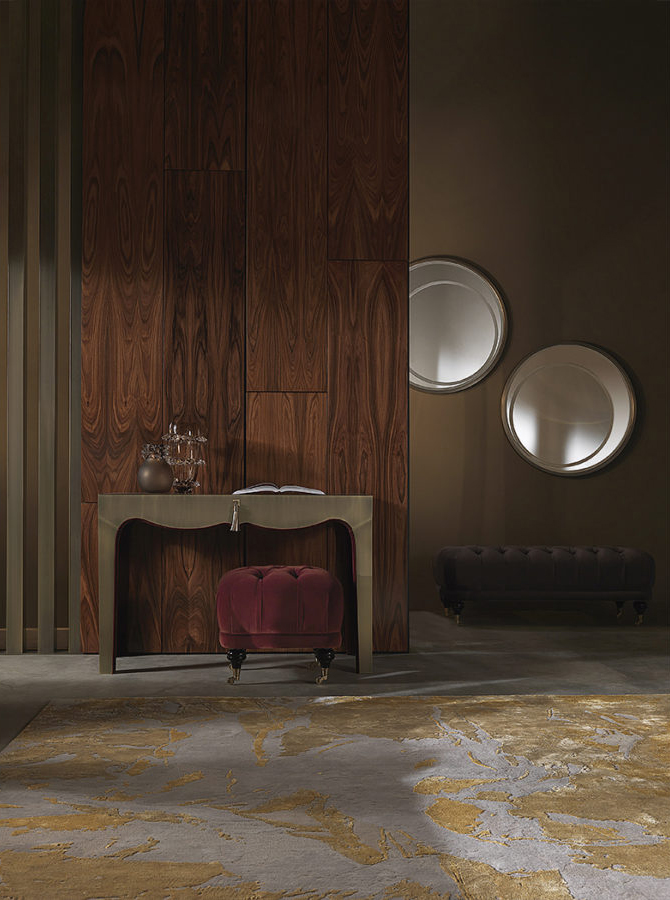 Function and simple elegance are combined in the Carrol_2 mirror. Thanks to its minimalist design and round shape, the mirror easily fit with furniture of any style, emphasizing the game of geometries that characterizes the 2019 collection by Gianfranco Ferré Home.