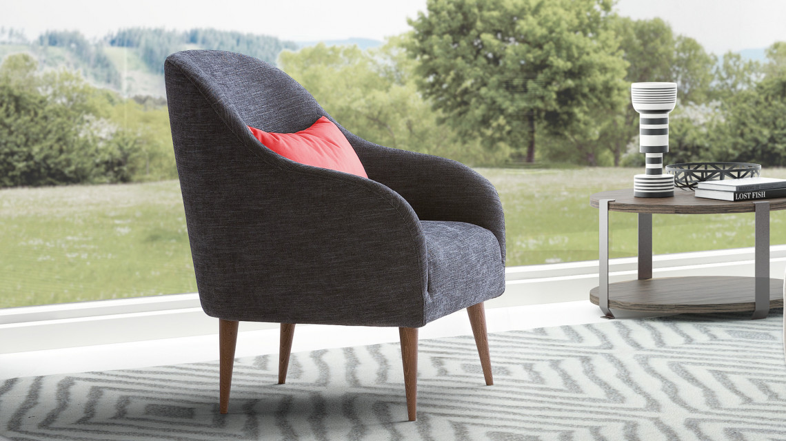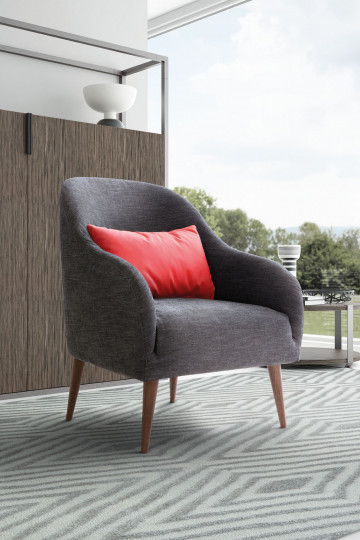 Four slender wooden feet gracefully support Adda`s seat. This armchair joins together the traditional linear geometry of its back with the dashing bend of its lateral supports. Though mindful of well-established crafting habits, its solid frame gives way to weightless details, which draw on contemporary design.