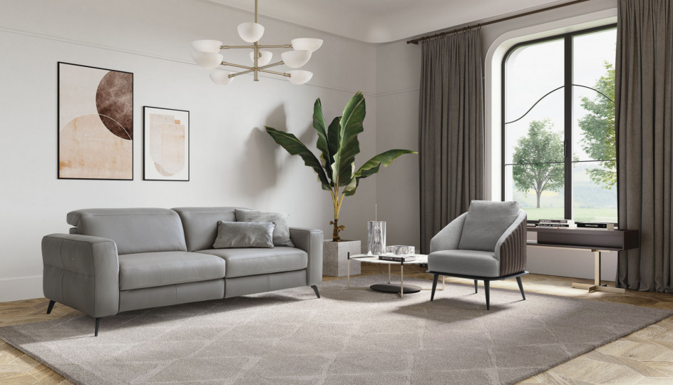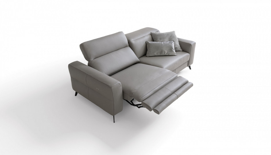 This fabric sofa offers maximum comfort because it follows the movement of the body. Gareth wins the heart of the living room with its headrests and its footrest relax mechanism.