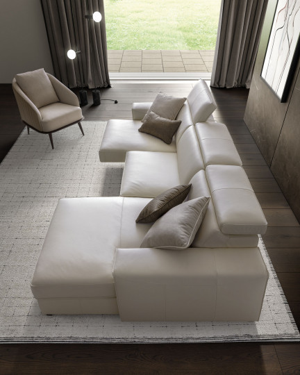 Robert boasts a magnificent, geometric shape paired with sliding seats and reclining headrests. By considering motion in horizontal and vertical directions, it revolutionizes the traditional sofa structure. Its comfortable seats are upholstered in fabric.