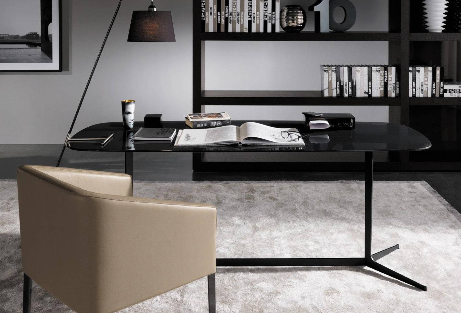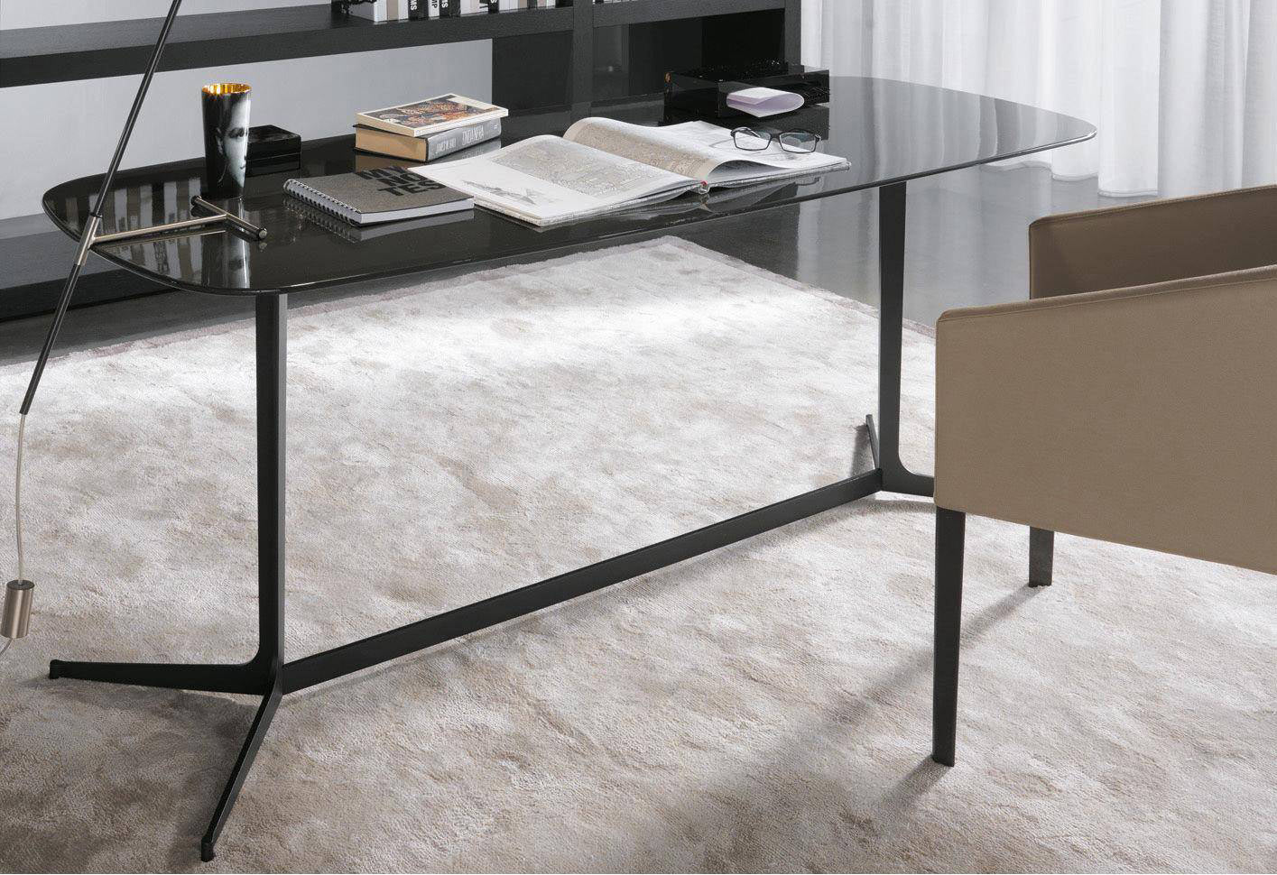 A writing desk and a lounge table featur-ing simple, contemporary design that can easily be paired with any of  the pieces in the Minotti collection.