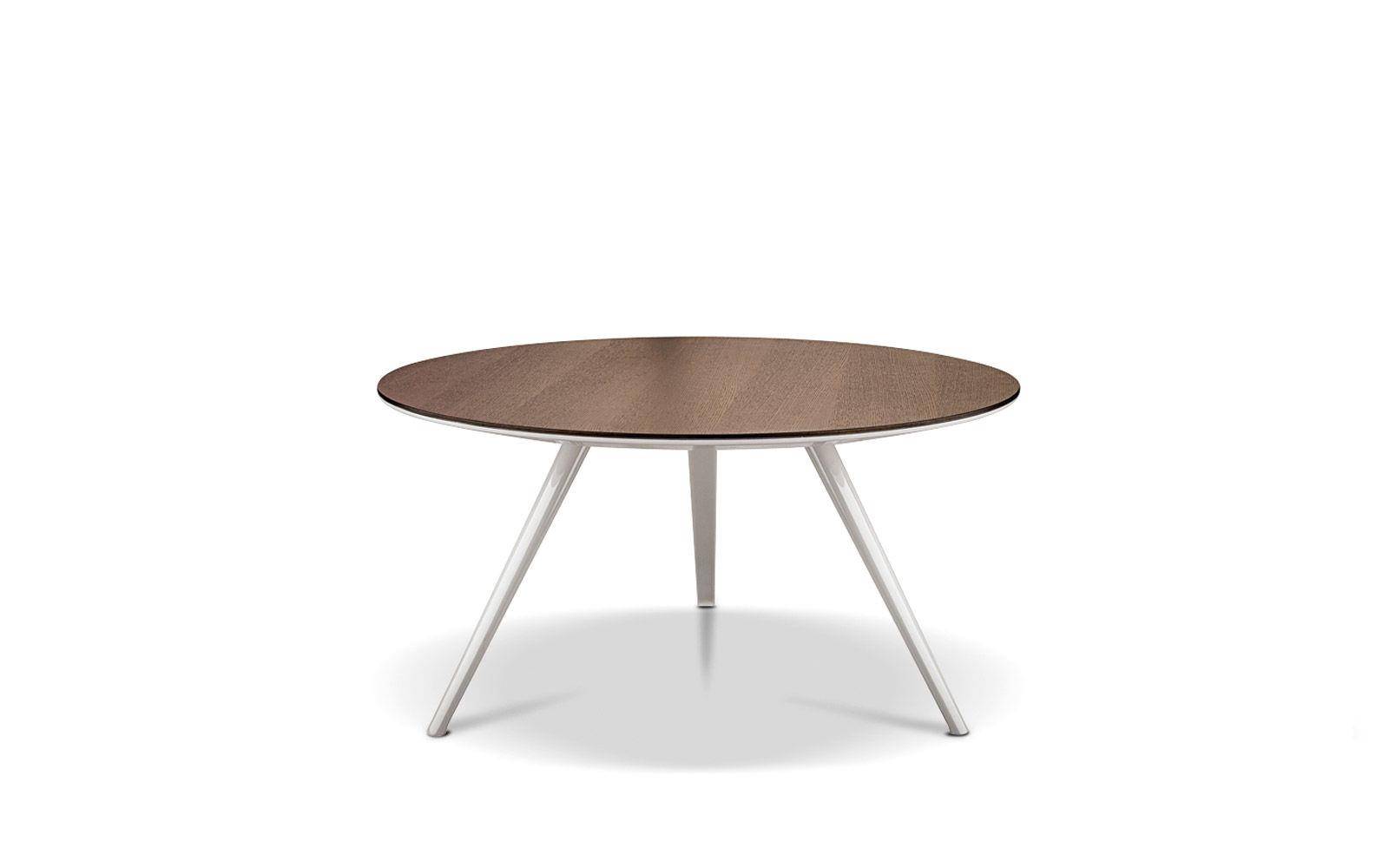 Every detail in the Evans table encapsulates the complexity that hides behind a seemingly apparent simplicity. The legs – three for the round table version and four for the rectangular one – are in die-cast aluminum and have a tapered line that makes its separation from the ground particularly dynamic giving a sense of great lightness to the table.