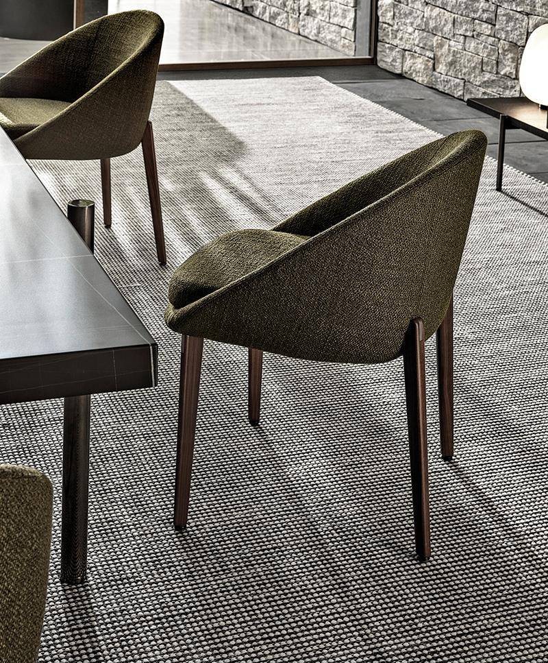 In 2019, GamFratesi designed two indoor proposals for Minotti, namely the Angie armchair and dining little armchair and the Shelley armchair, also available in the lounge and dining little armchair versions. The partnership evolved and was strengthened in 2020 with the launch of the Fynn family of seats, in the armchair, lounge and dining little armchair, bench and coffee table versions. A project characterized by an ultra-light aesthetic, expressed in the indoor and outdoor versions, associating the creativity of fine cabinet-making found in the wooden elements with the sophisticated sartorial elegance of the fabric or saddle-hide coverings.