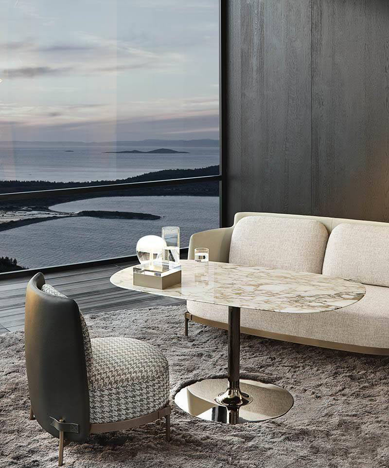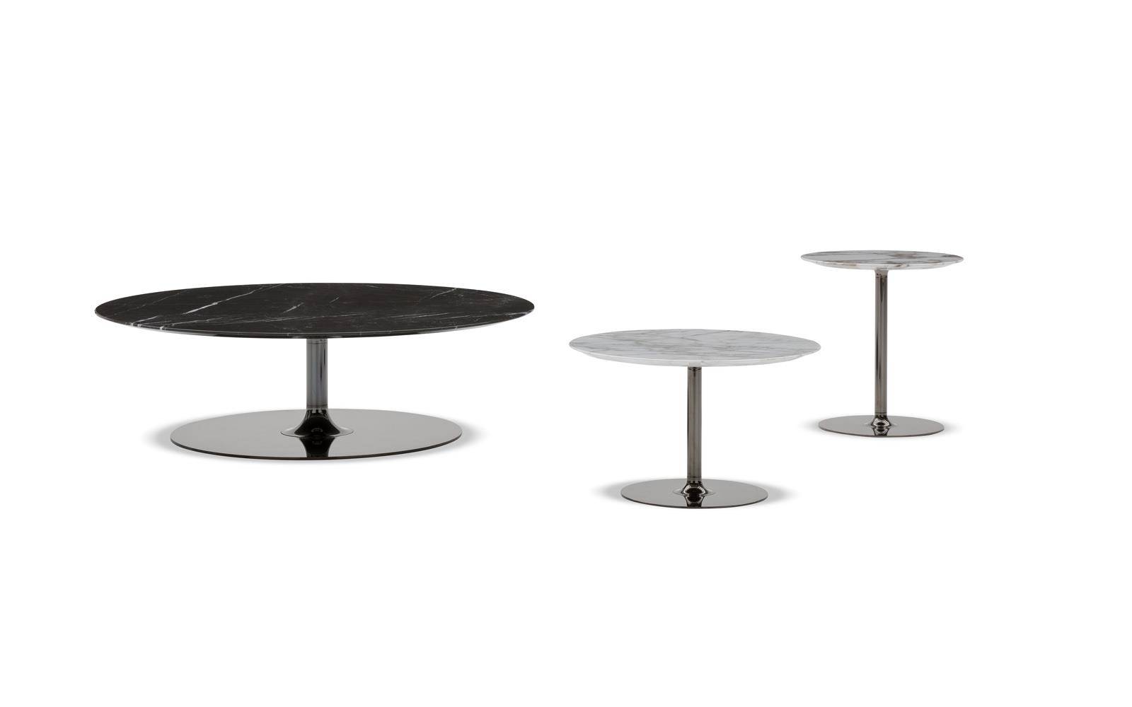 Conceived both in the lounge and side table versions, it features a precious top in Calacatta or Stone Grey marble.