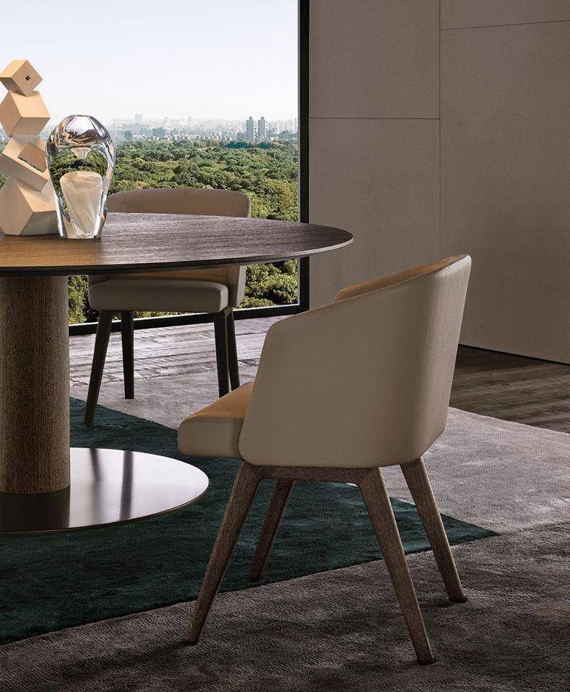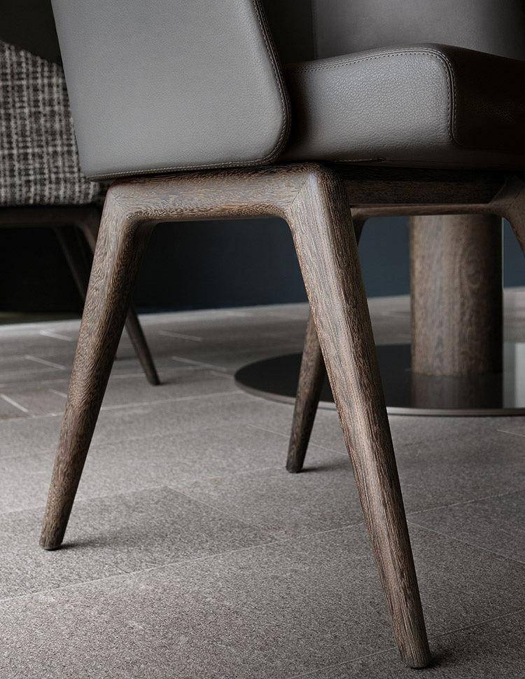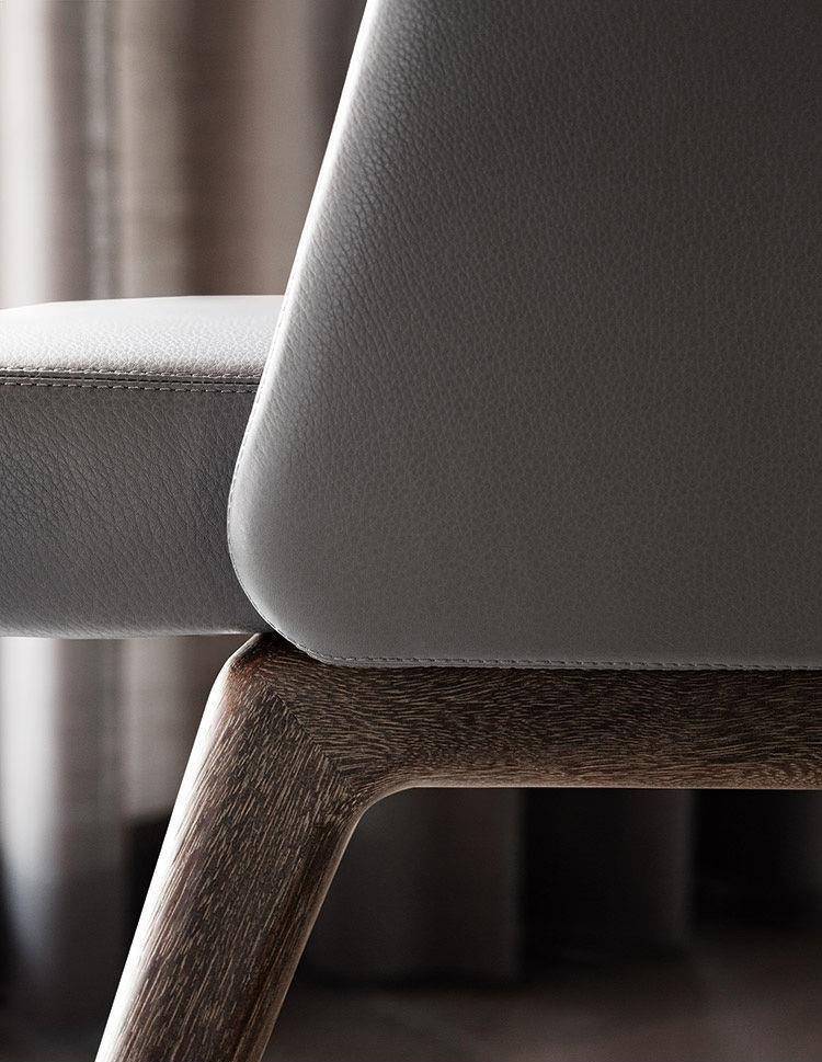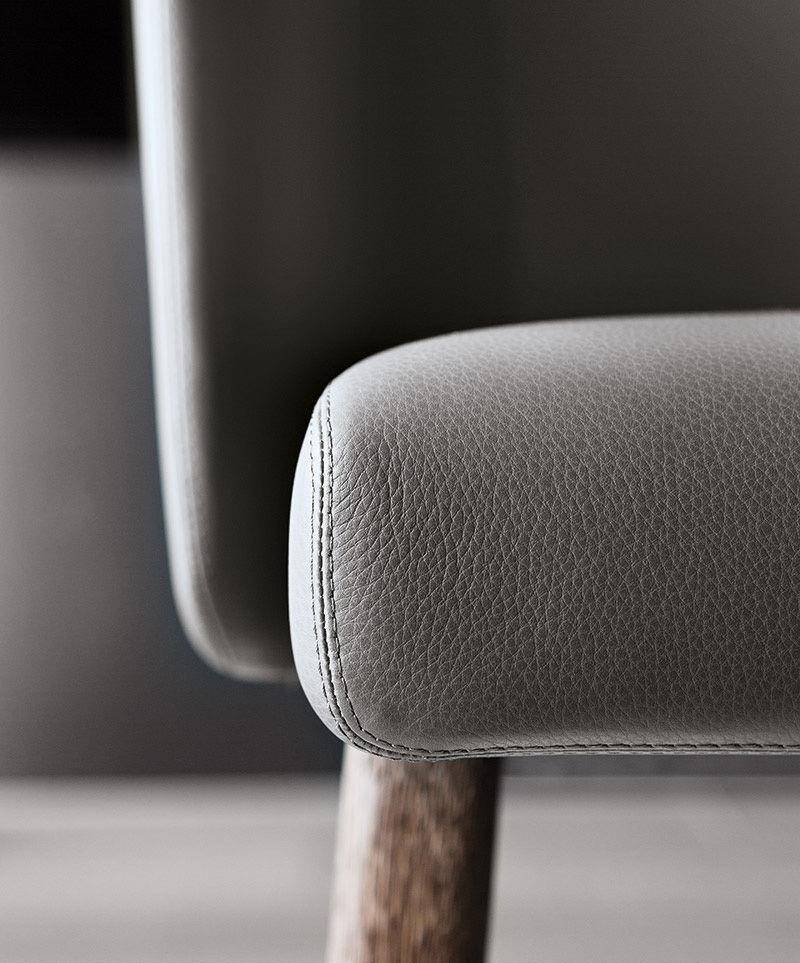 Reeves “Dining” leverages the qualities of its namesake armchair in the design of a little armchair that combines comfort and well-balanced proportions.