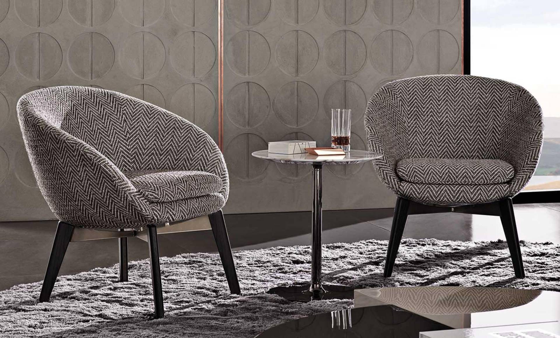 Recalling the composed style of the Fifties the Russell family consists of a variety of typologies of great appeal that range from the enveloping armchair to the elegant lounge and dining armchairs, the bergère, the soft sofa and the ottoman.