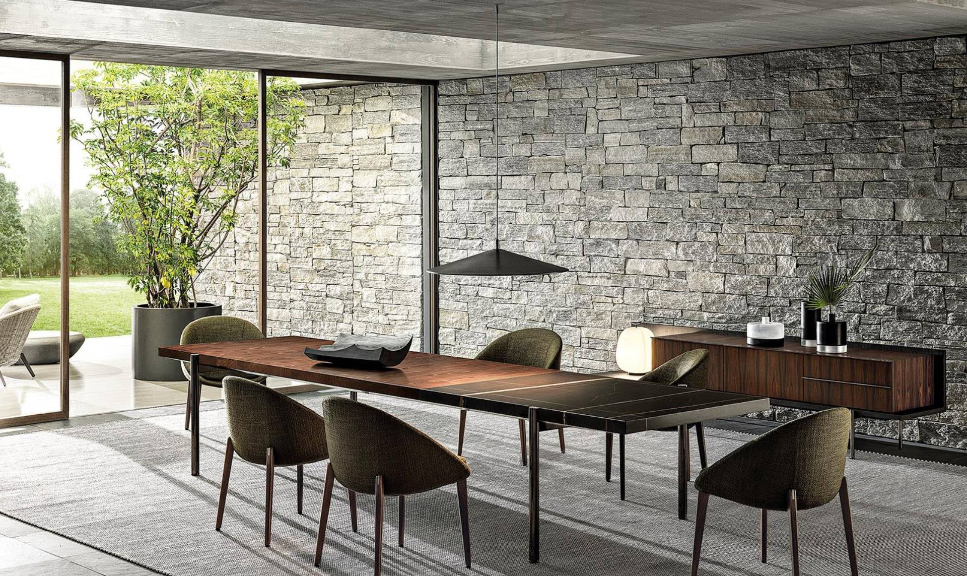 For the 2020 Collection, Marcio Kogan further strengthened his creative partnership with Minotti by proposing, for the first time, three indoor designs: the Daiki armchairs (available also in the outdoor version together with the dining little armchairs), the Boteco family of sideboards and the Linha tables and coffee tables. The designs incorporate evidence of his trademark minimal style, defined by rigorous lines and shapes, which at the same time express a sophisticated choice of finishes and fine materials.