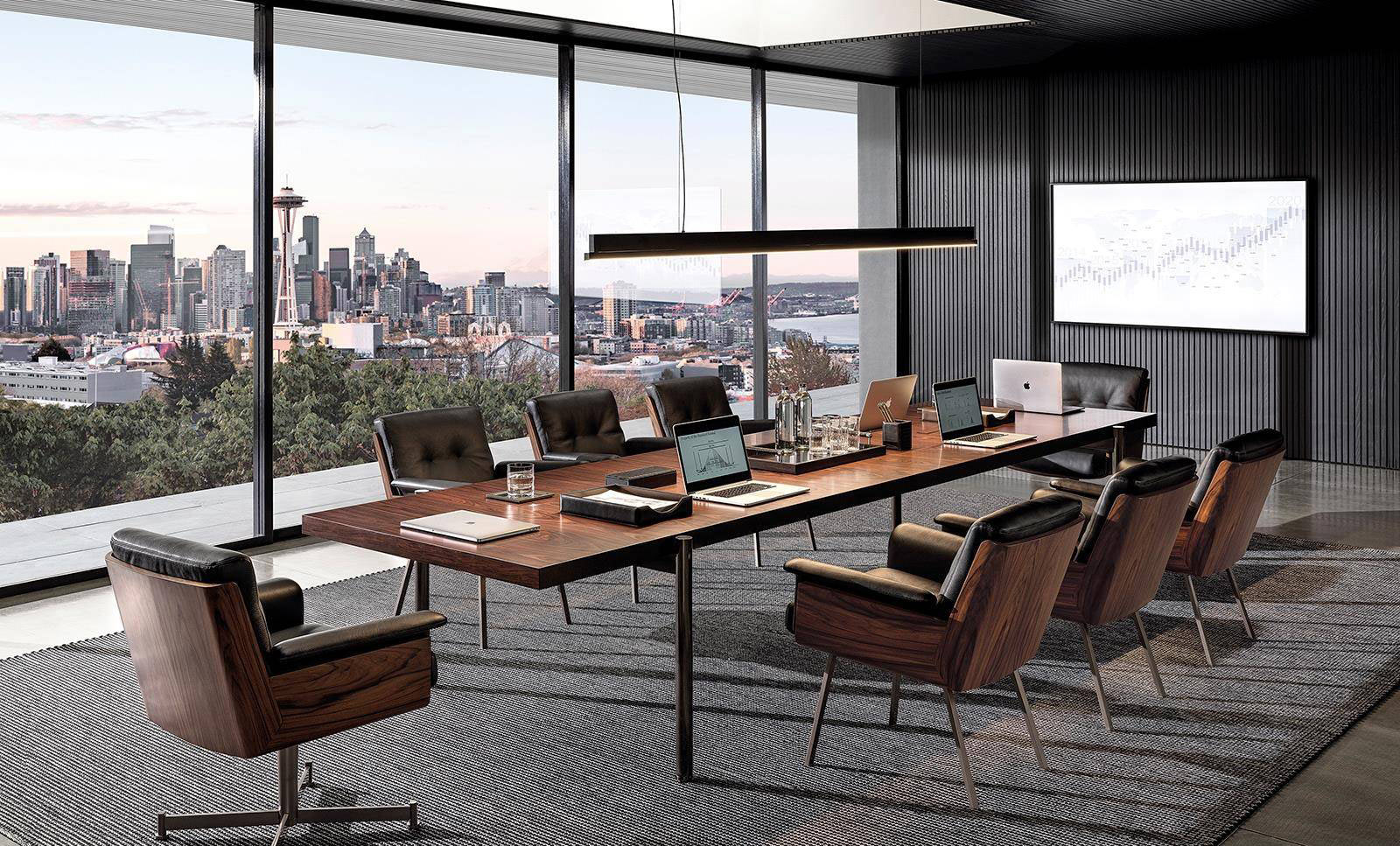 With a design capable of interpreting both the spaces at home and those of the workplace, the Superquadra table slots into high profile meeting rooms and board rooms with style.