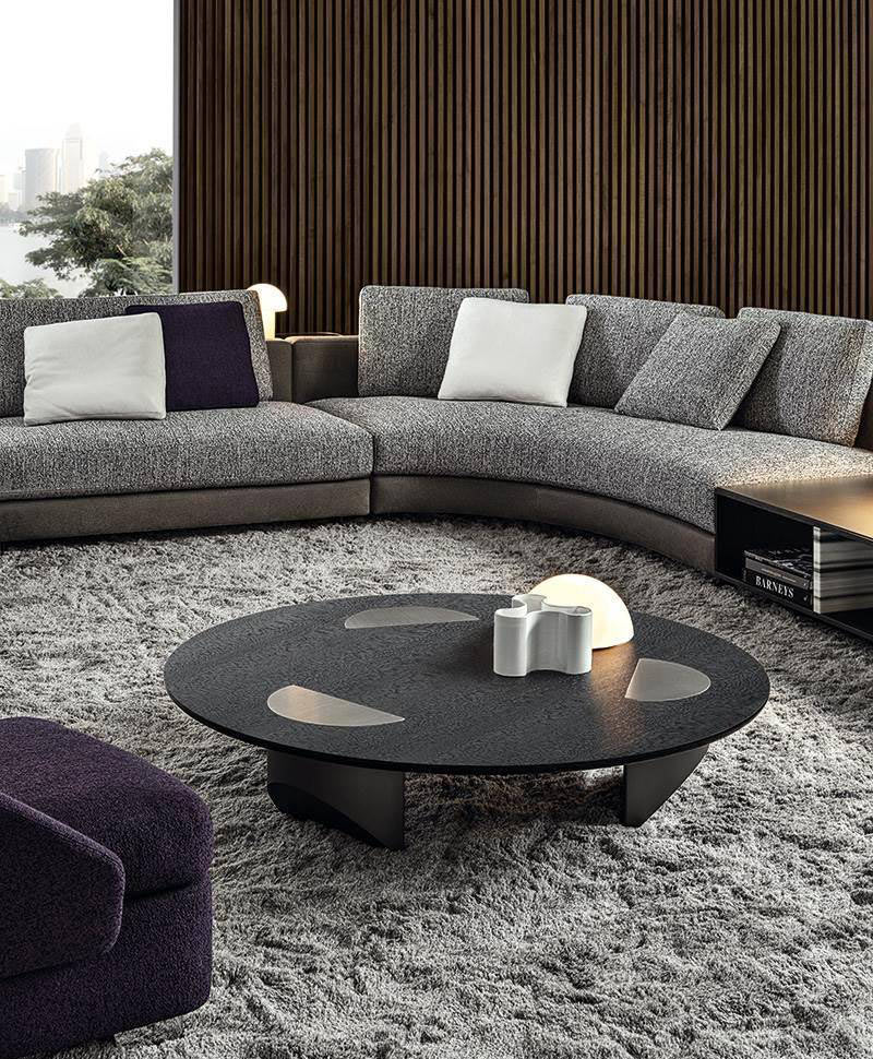 The creative synergy between Minotti and Oki Sato was expressed in 2018 with the launch of the Tape collection - a family of seats and tables characterized by a light silhouette and a strong identity - and the Ring and Waves coffee tables.