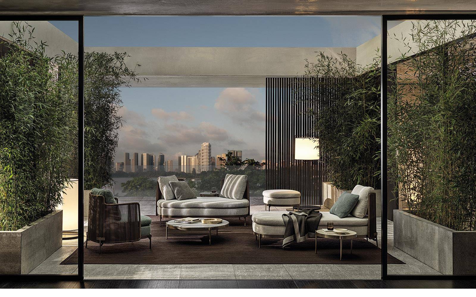 In 2020, Oki Sato designed the Torii family of seats and furnishing accessories, available for both residential and Hospitality settings: a very detailed project that plays around with the roundness of the volumes, the thinness of the profiles and the apparent formal simplicity, at the same time highlighting the haute couture approach in Minotti’s distinctive sartorial craftsmanship.