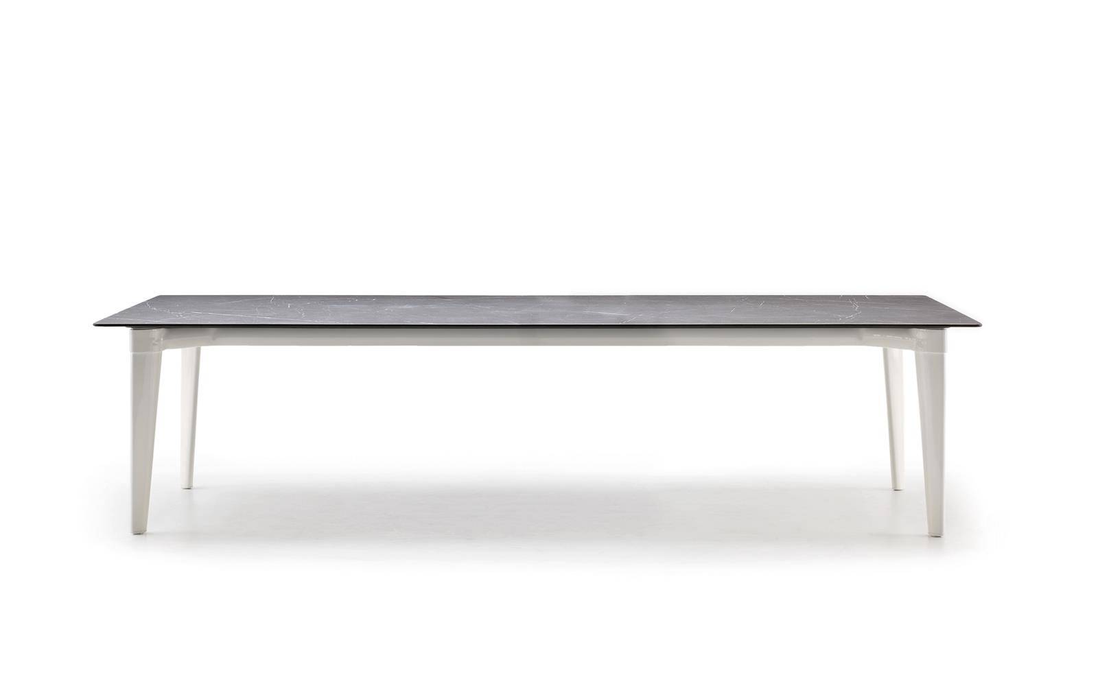 The 2021 version of Terrace presents the rectangular top in solid teak with a natural finish, and frame and legs varnished in White.