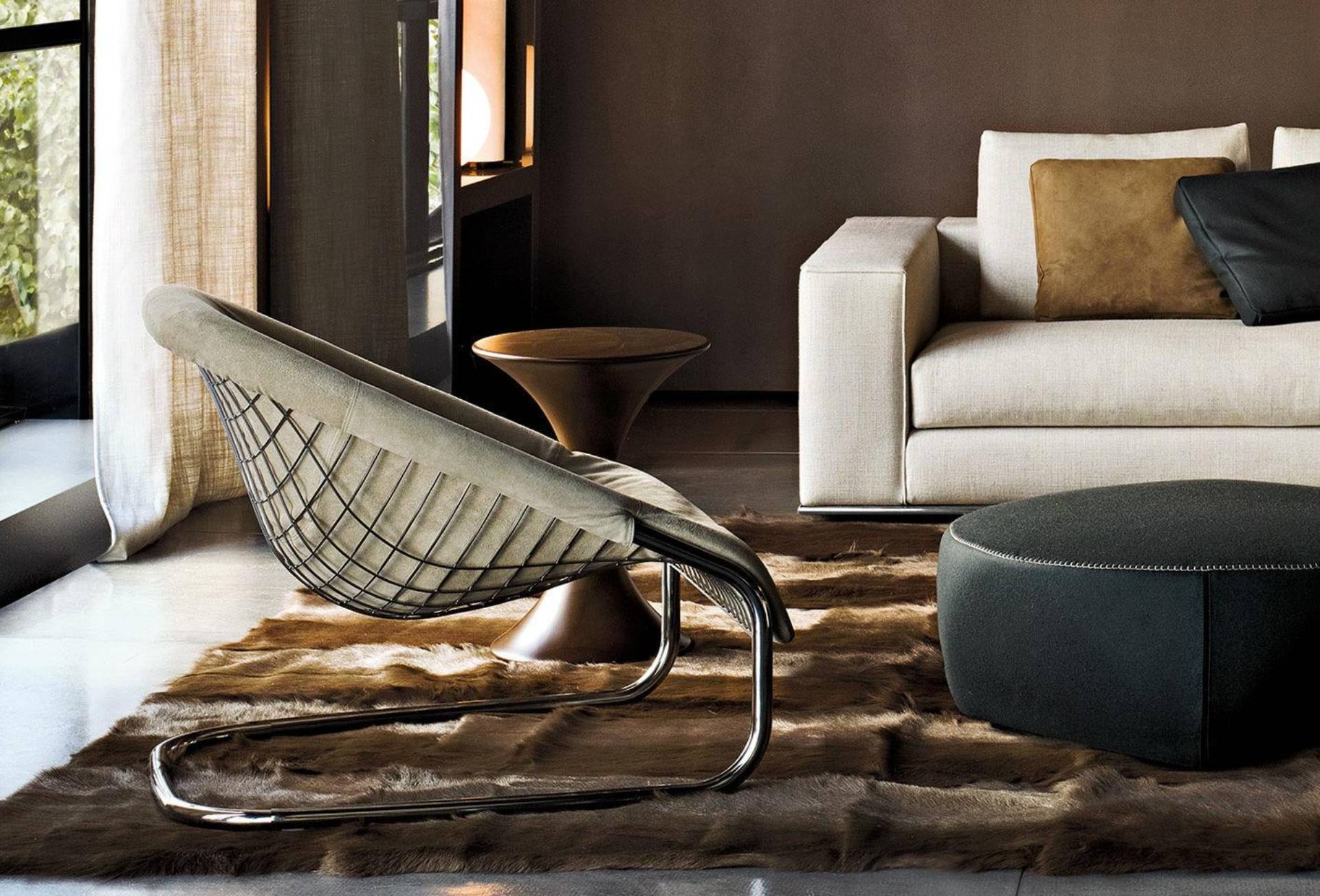 Its lightweight metal structure, which seems to defy the force of gravity, makes for a considerably more versatile use, in a variety of combinations with all the sofas from the Minotti collection.