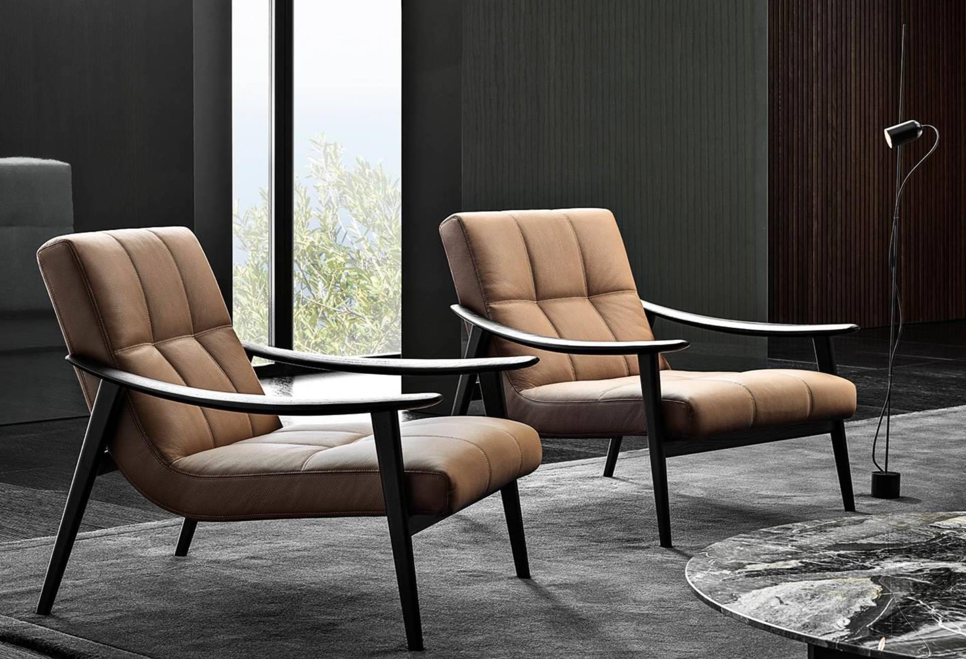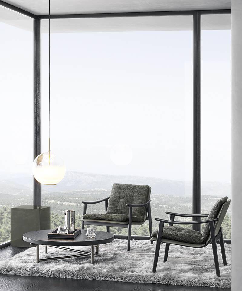 In 2019, GamFratesi designed two indoor proposals for Minotti, namely the Angie armchair and dining little armchair and the Shelley armchair, also available in the lounge and dining little armchair versions. The partnership evolved and was strengthened in 2020 with the launch of the Fynn family of seats, in the armchair, lounge and dining little armchair, bench and coffee table versions. A project characterized by an ultra-light aesthetic, expressed in the indoor and outdoor versions, associating the creativity of fine cabinet-making found in the wooden elements with the sophisticated sartorial elegance of the fabric or saddle-hide coverings.
