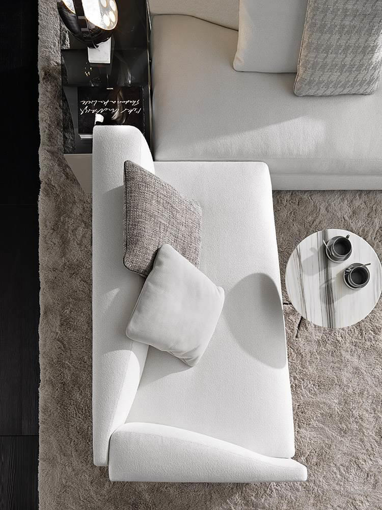 Granville is available both in the traditional sofa option and as a more flexible solution of detached islands. Joinable together, the various elements come without fixed backs and armrests and are characterized by the original curved shape of the removable armrest.