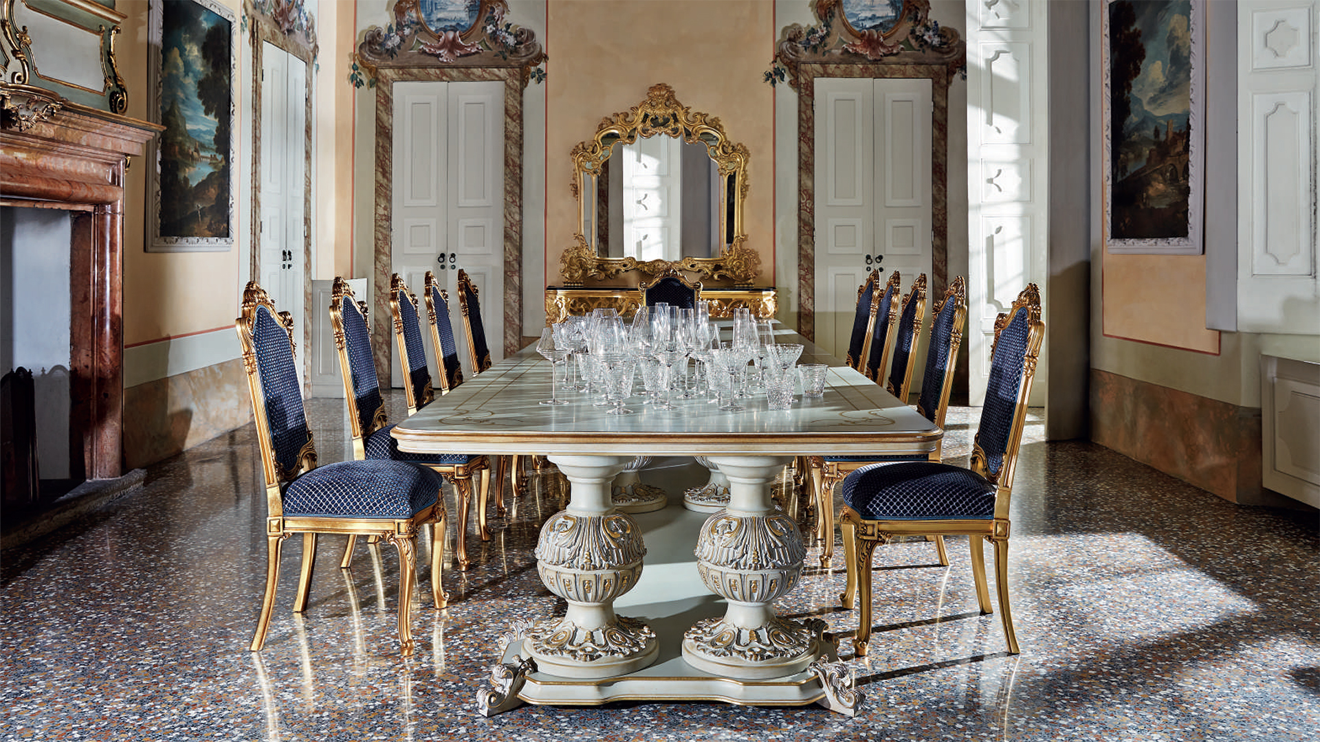 Living room furniture Demetra is made in baroque and rococo style. The main material of the headset is natural wood, processed using various techniques. The collection is covered with hand-carved wood, hand-painted, gilded handles, glasses. Filler - polyurethane. The set is available in different finishes.