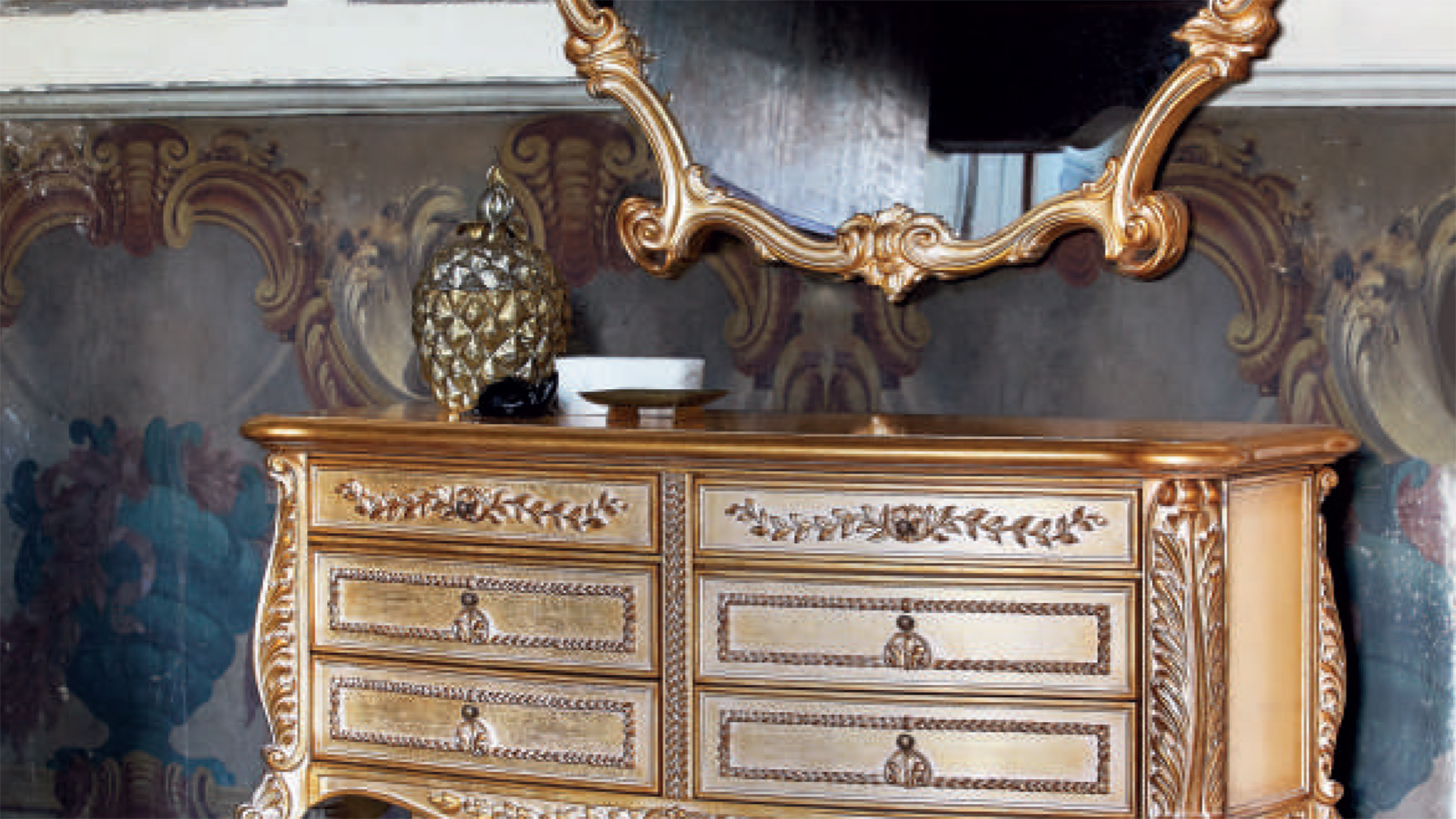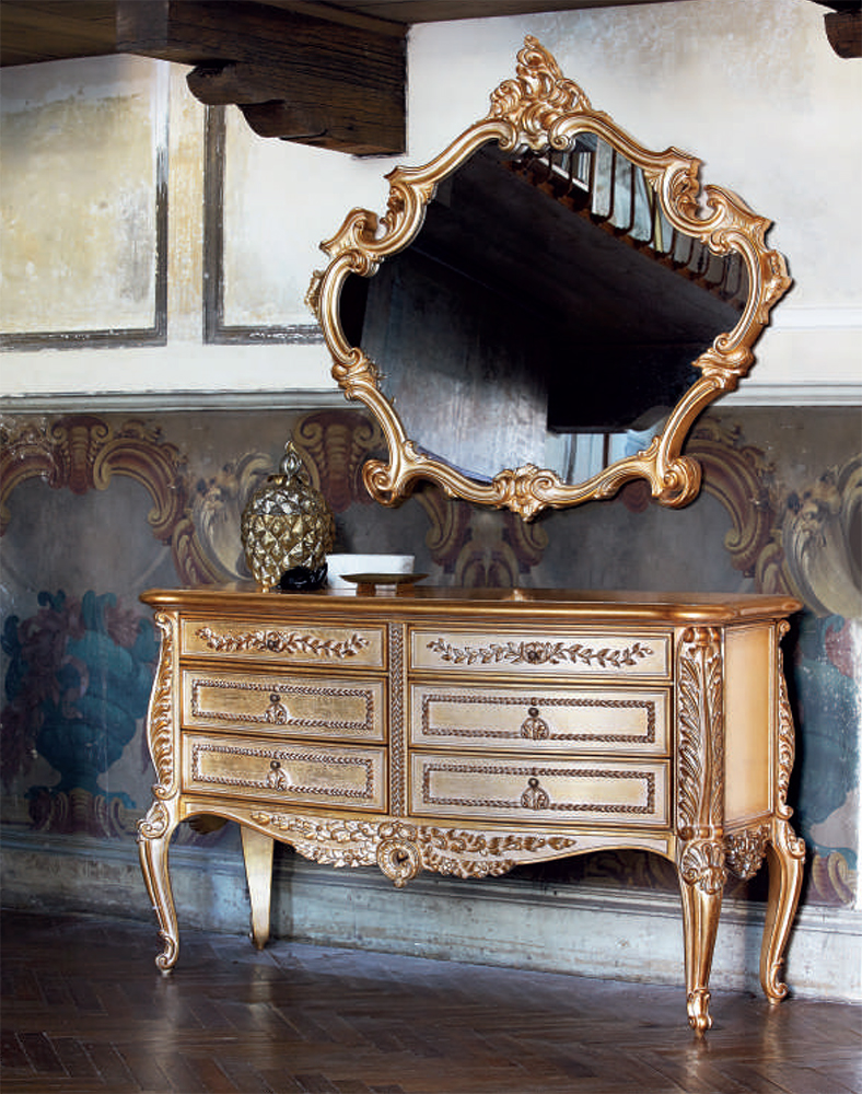 Dresser with 6 drawers, wooden surface and glass. Other finishes are possible.