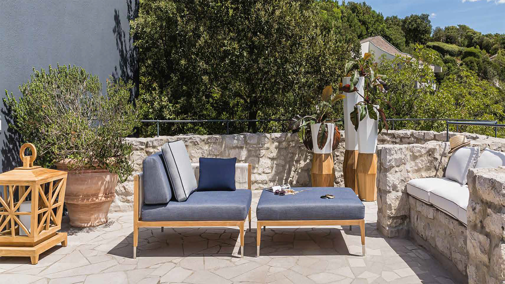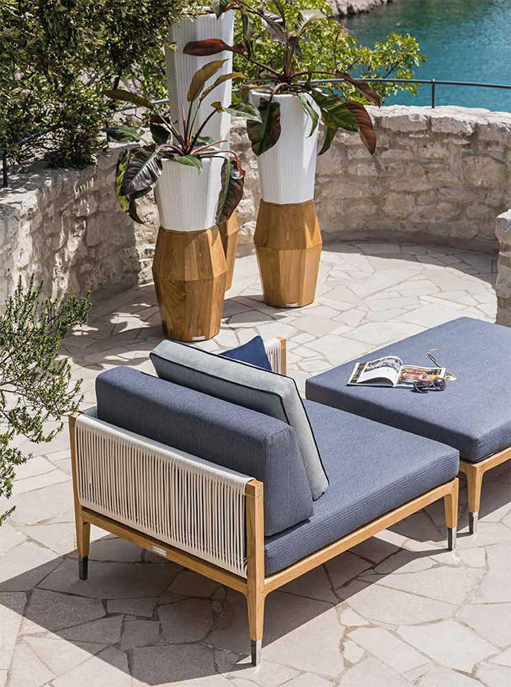 In addition, the nuance of the teak marries with the purity of the white Politech, thus creating an elegant chromatic palette. The customisable fabric of the cushions gives Amalfi its distinctive colour: choose the shade that you like the most and better combines with your outdoor. There are three fabrics and seven colours available in order to create your very unique Amalfi.