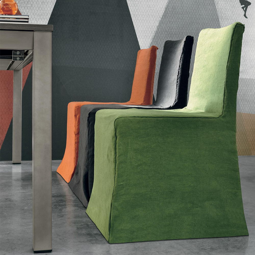 The unique design features upholstery from top to bottom that is removable for easy cleaning and customization. With soft cushioning and material that feels great against your skin, these chairs provide comfort during meals and social gatherings. The slightly curved back offers ergonomic support, as well. Pair with an array of Tomasella dining tables to form a cohesive finishing look.