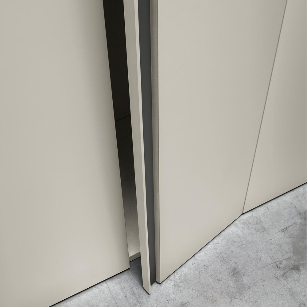 A special, decorative strip along the whole height of the door becomes the handle and can be customized using trendy colours and materials, chosen to suit your personal taste.