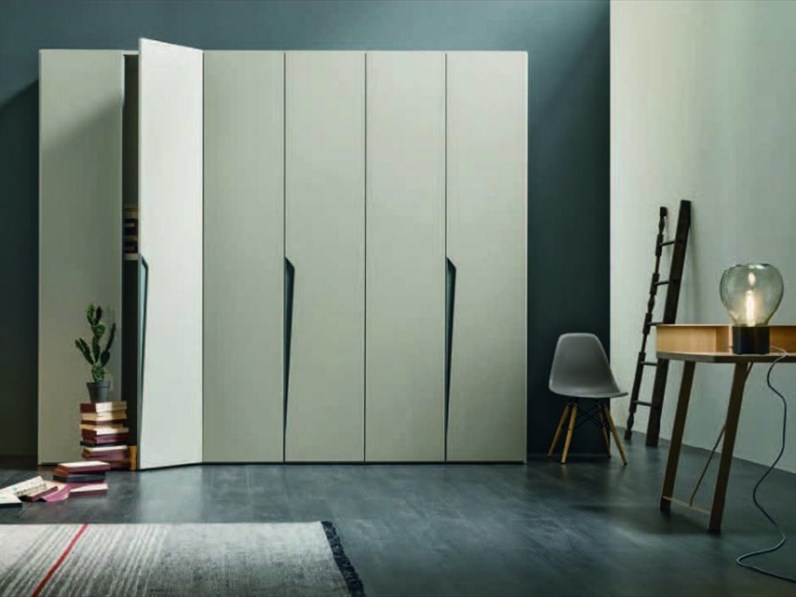 The shape of this handle looks like a teardrop that runs down from the front of the wardrobe`s hinged doors. The detail of a handle is sometimes all it takes to add character to a wardrobe and a creative touche to the room.