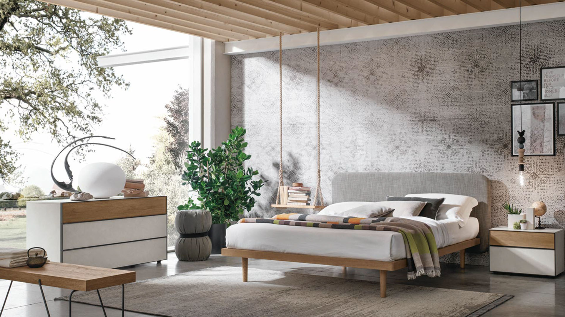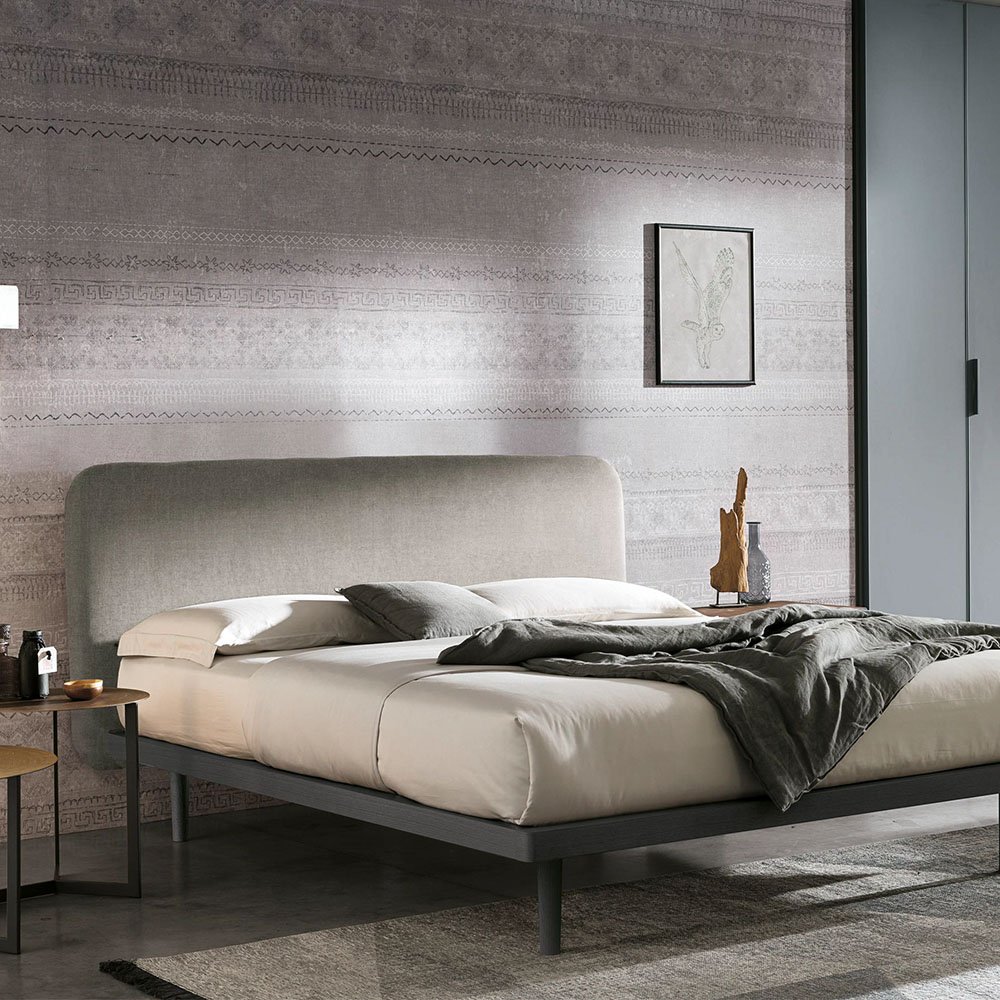 Informal, self-assured and ultra young: the minimalist bed with its rounded headboard and very slim bed frame is extremely modern.