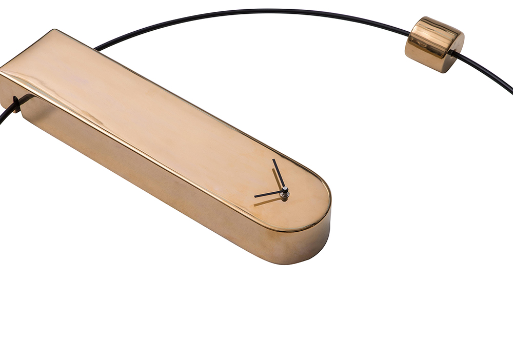 Analog clock in lacquered metal and ceramic inserts. Scan tour time for aesthetic refinement.